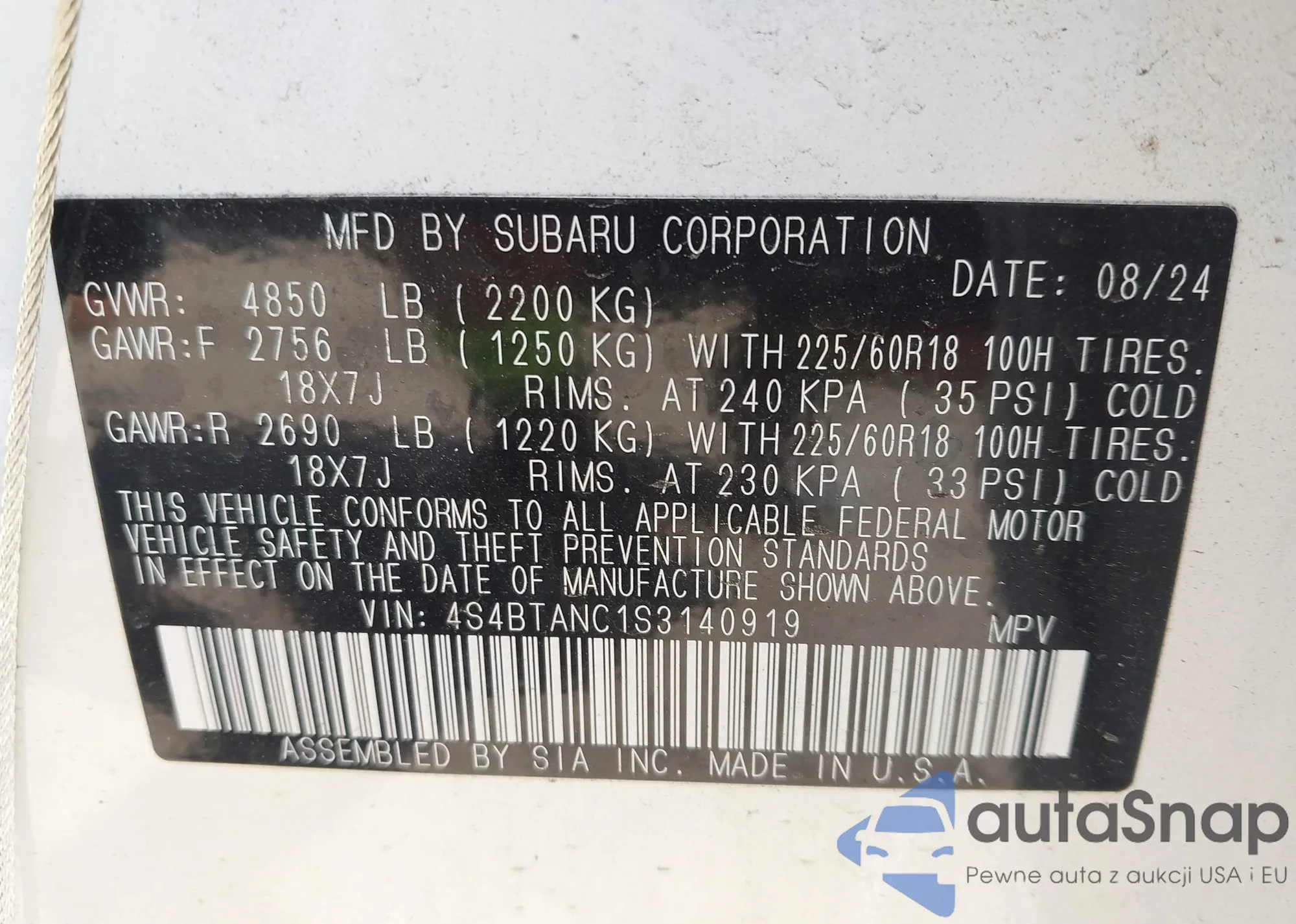 LOT: 42955498 VIN: 4S4BTANC1S3140919
