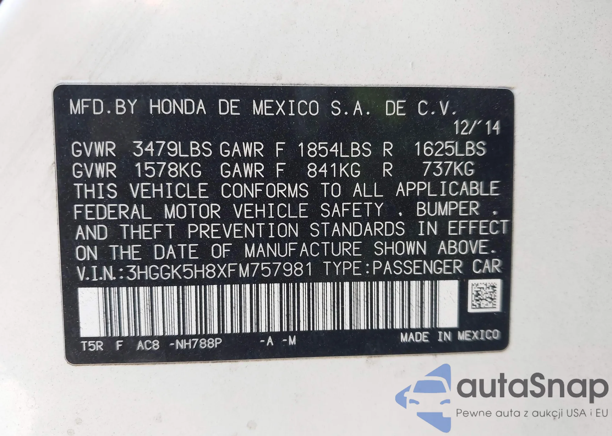 • VIN 3HGGK5H8XFM757981