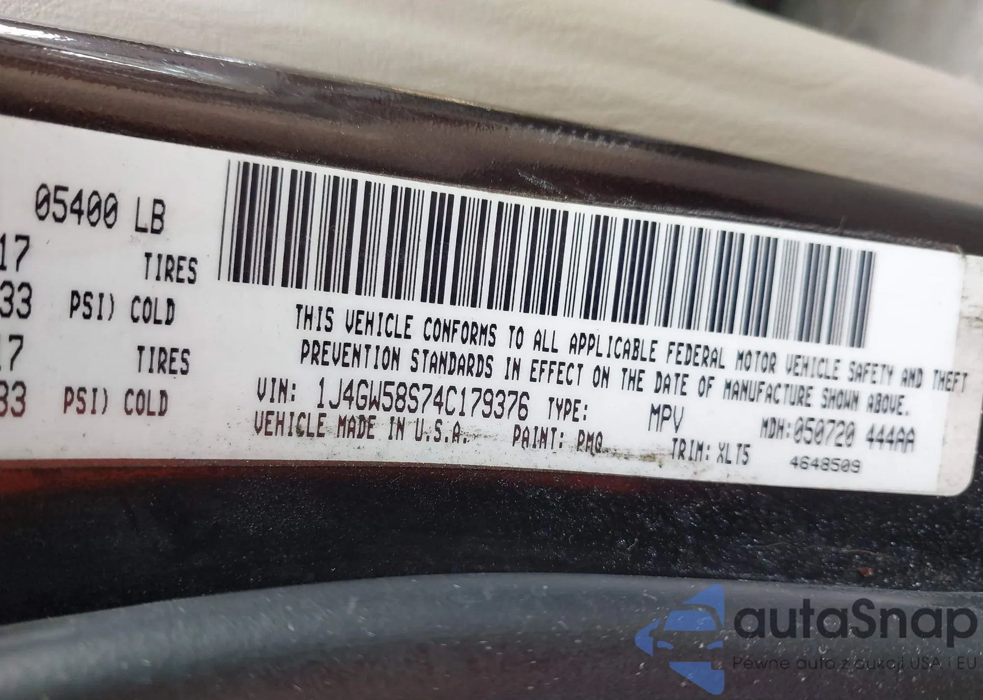• VIN 1J4GW58S74C179376