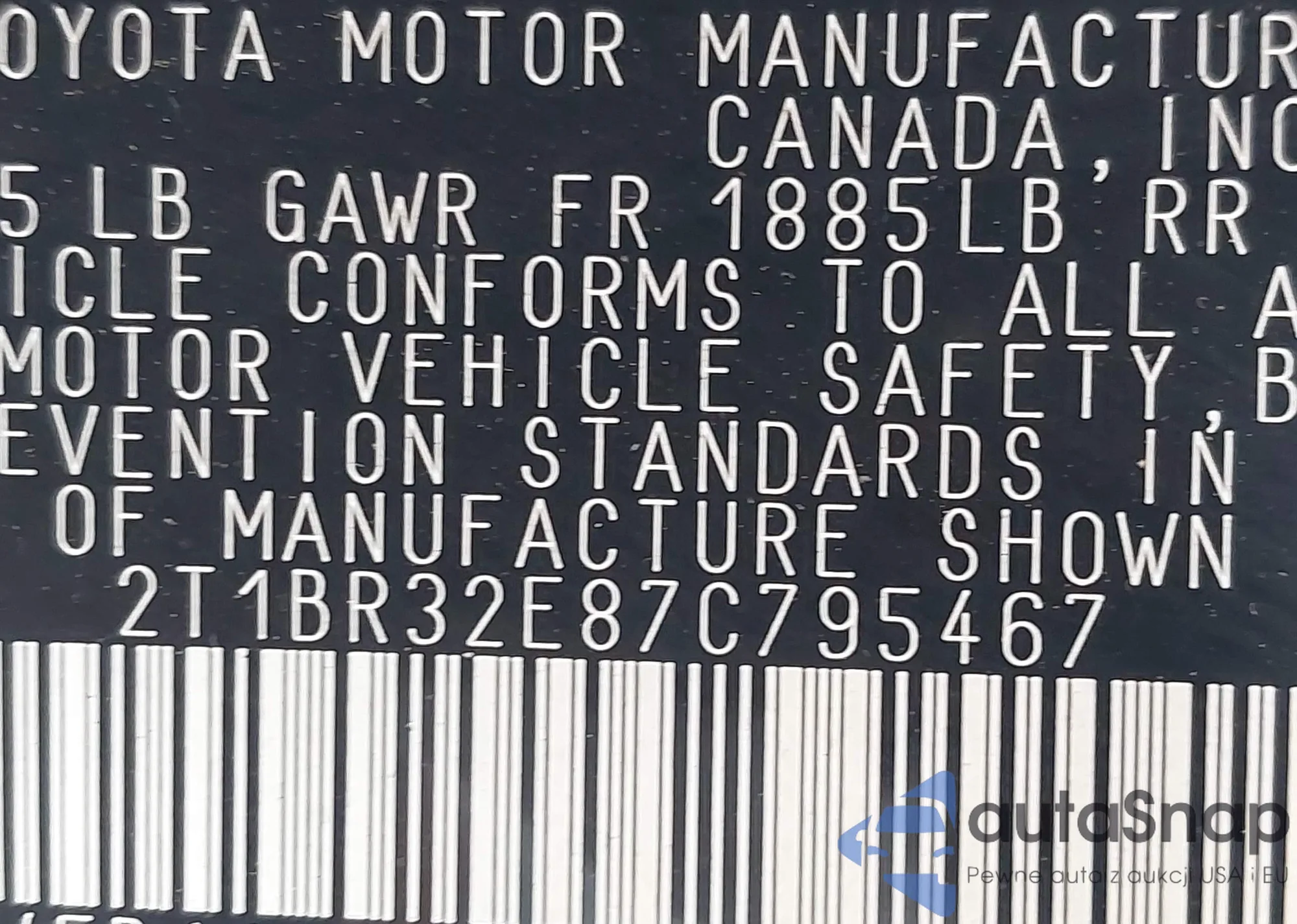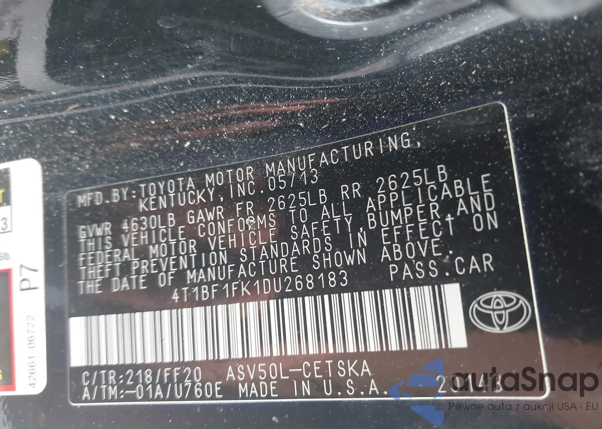 • VIN 4T1BF1FK1DU268183