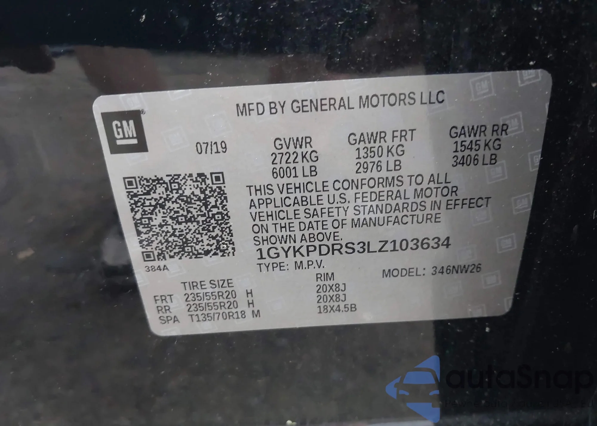 LOT: 42597575 VIN: 1GYKPDRS3LZ103634