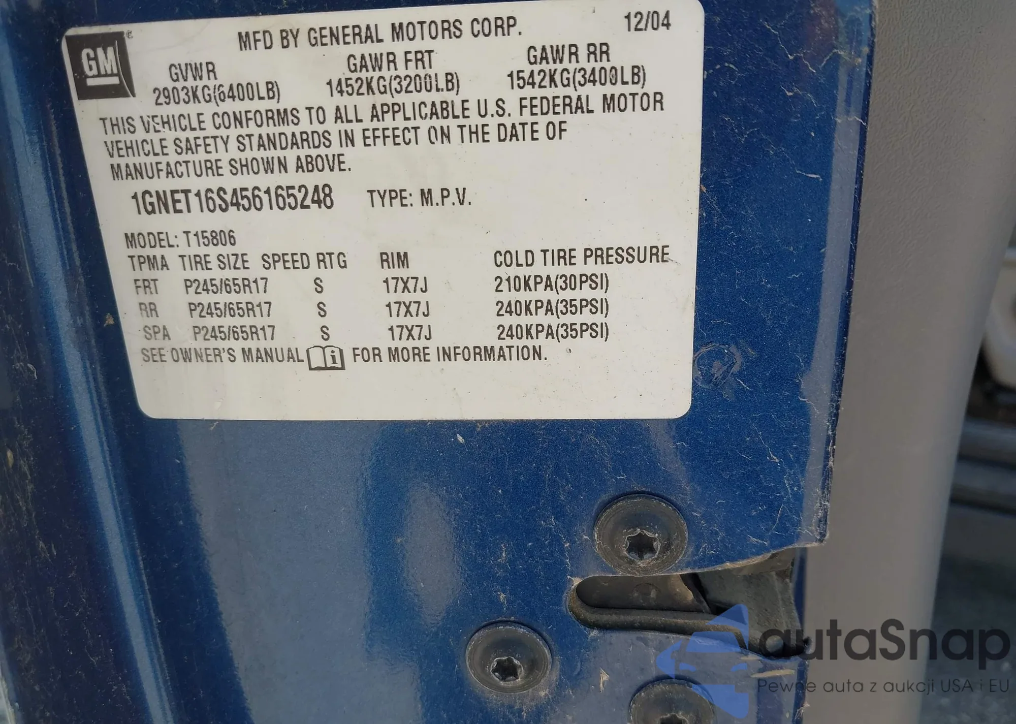 LOT: 42718239 VIN: 1GNET16S456165248