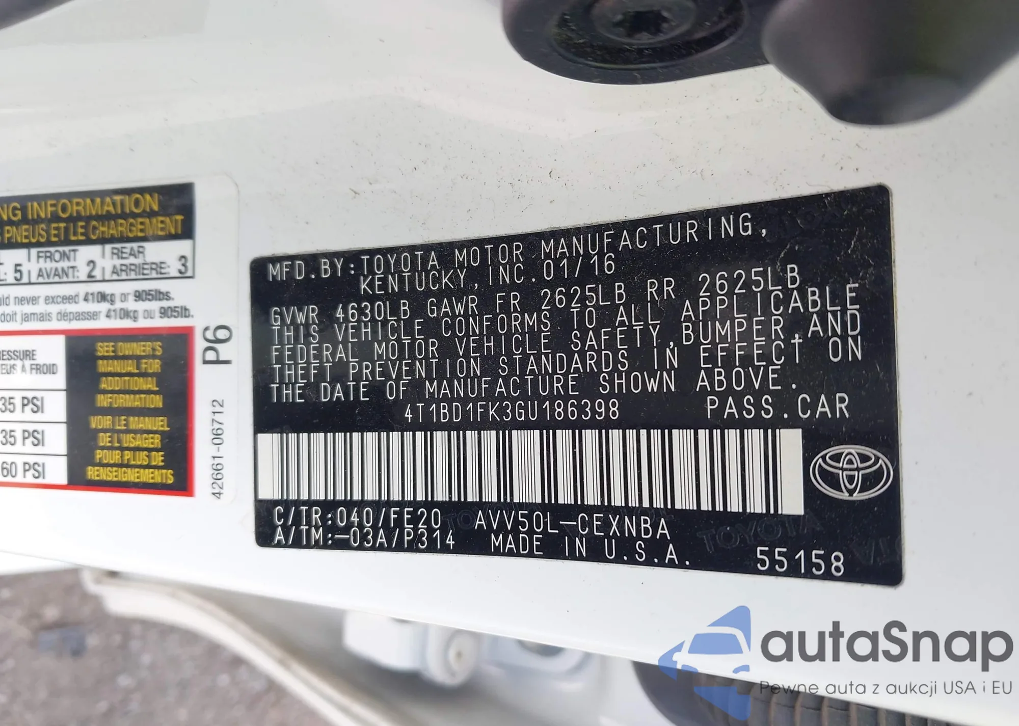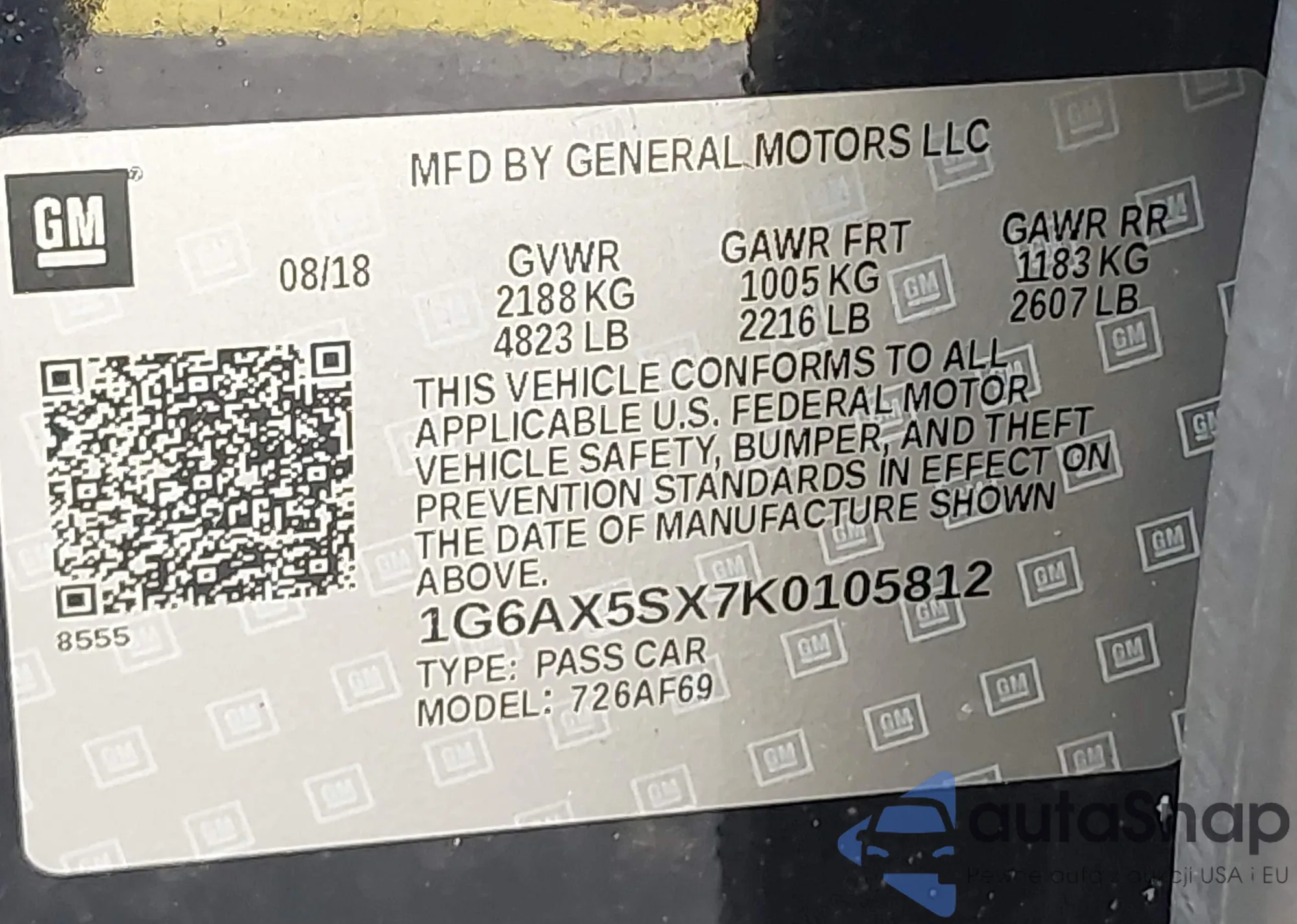 • VIN 1G6AX5SX7K0105812