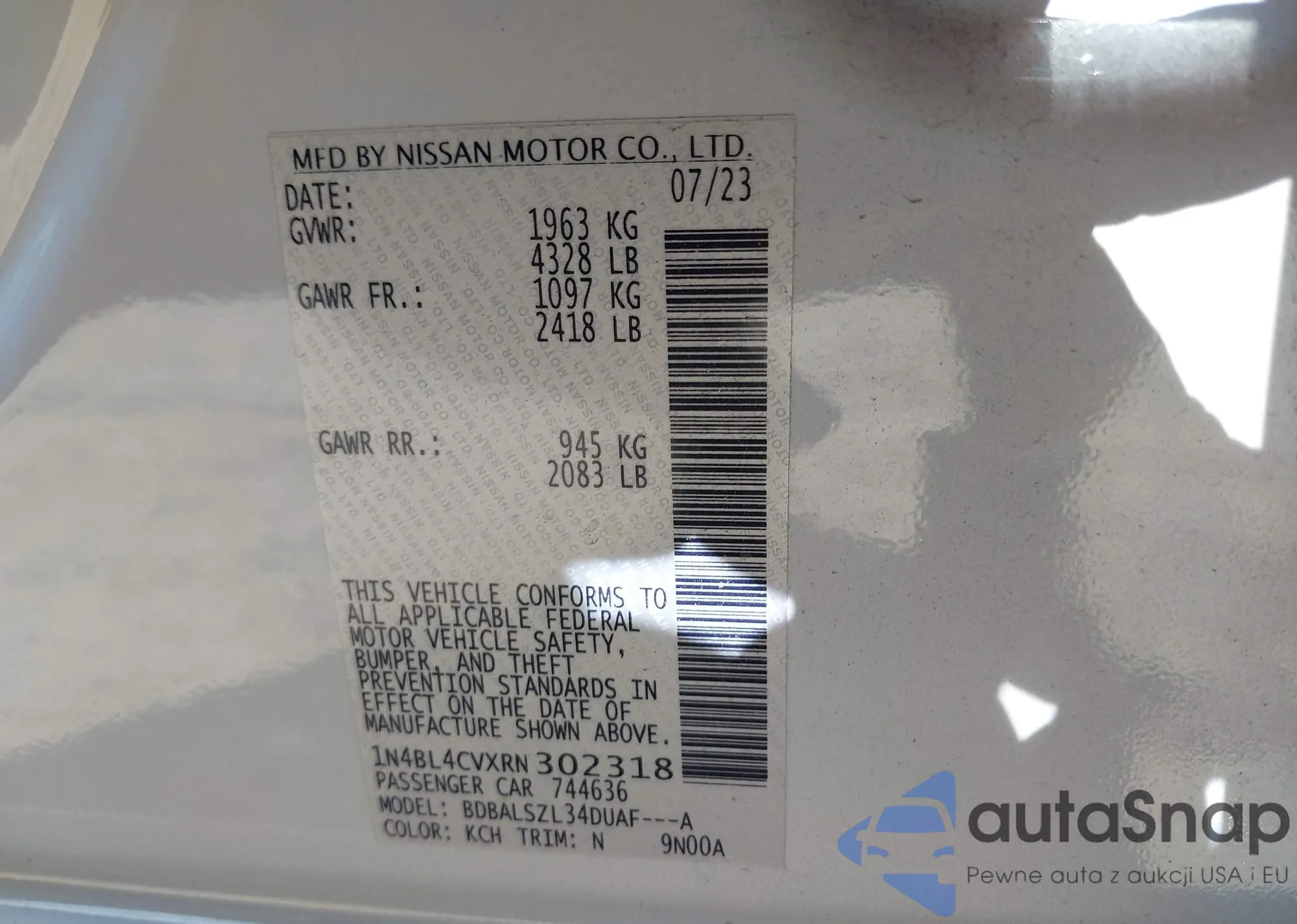 LOT: 42890928 VIN: 3N1AB7APXDL693819