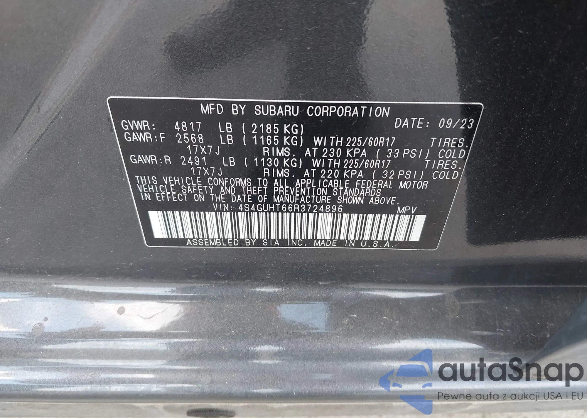 LOT: 42973776 VIN: 4S4GUHT66R3724896