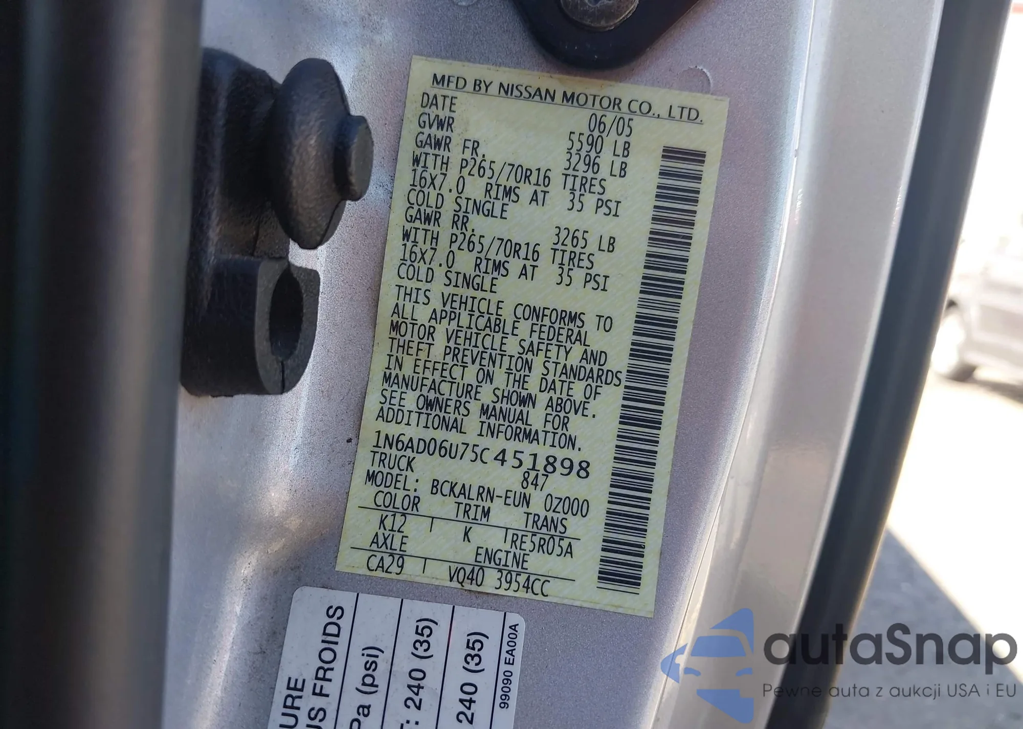 • VIN 1N6AD06U75C451898