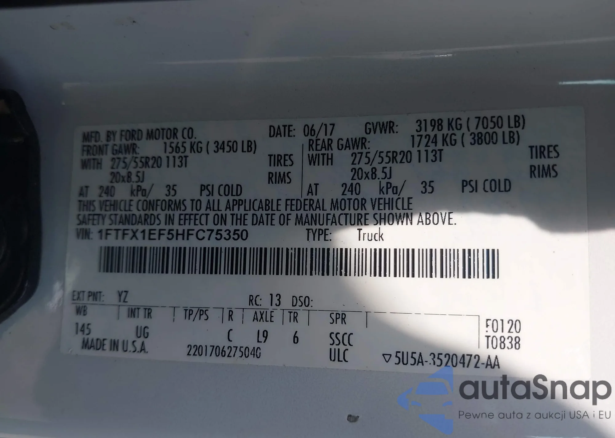 • VIN 1FTFX1EF5HFC75350