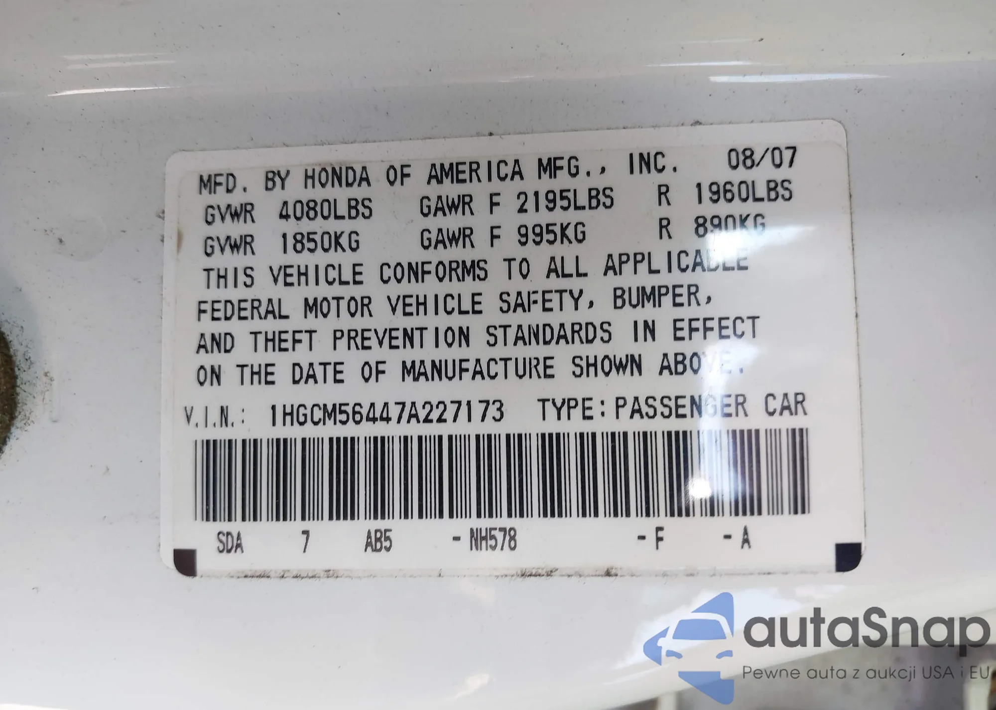 • VIN 1HGCM56447A227173