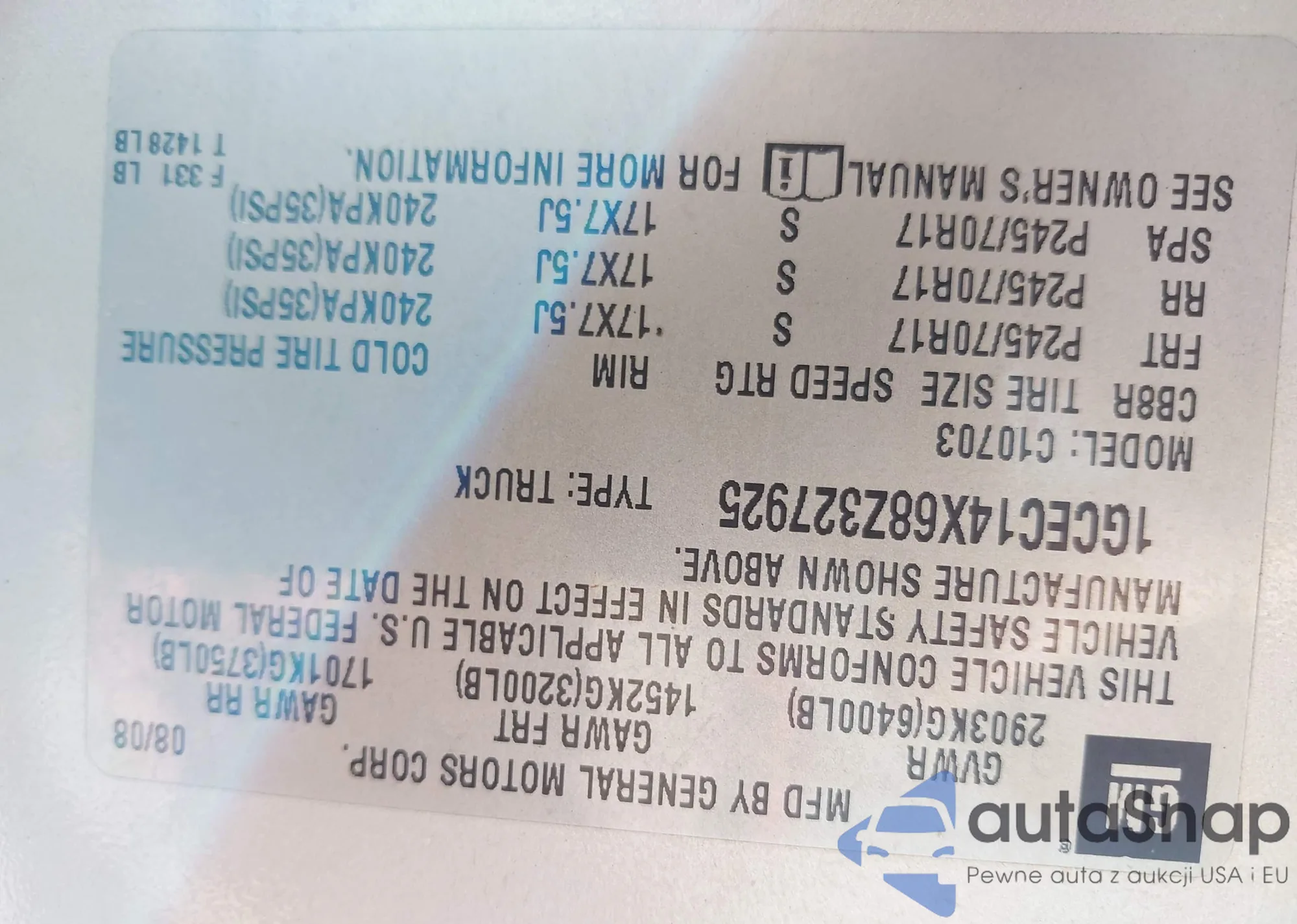 LOT: 43362482 VIN: 1GCCS149878229088