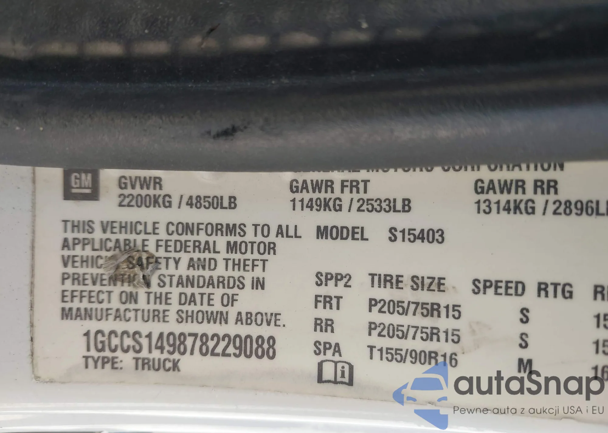 • VIN 1GCCS149878229088
