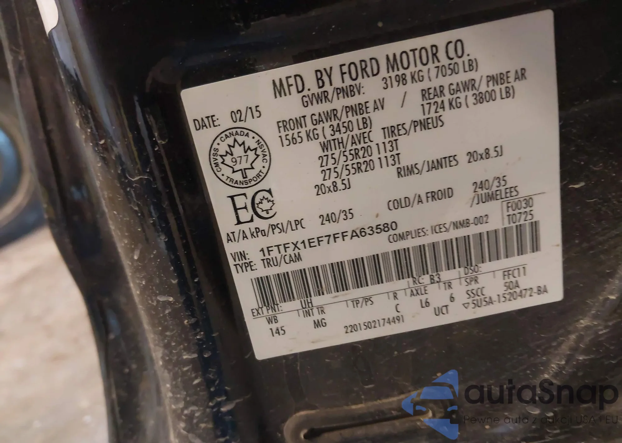 • VIN 1FA6P8CF8L5145904