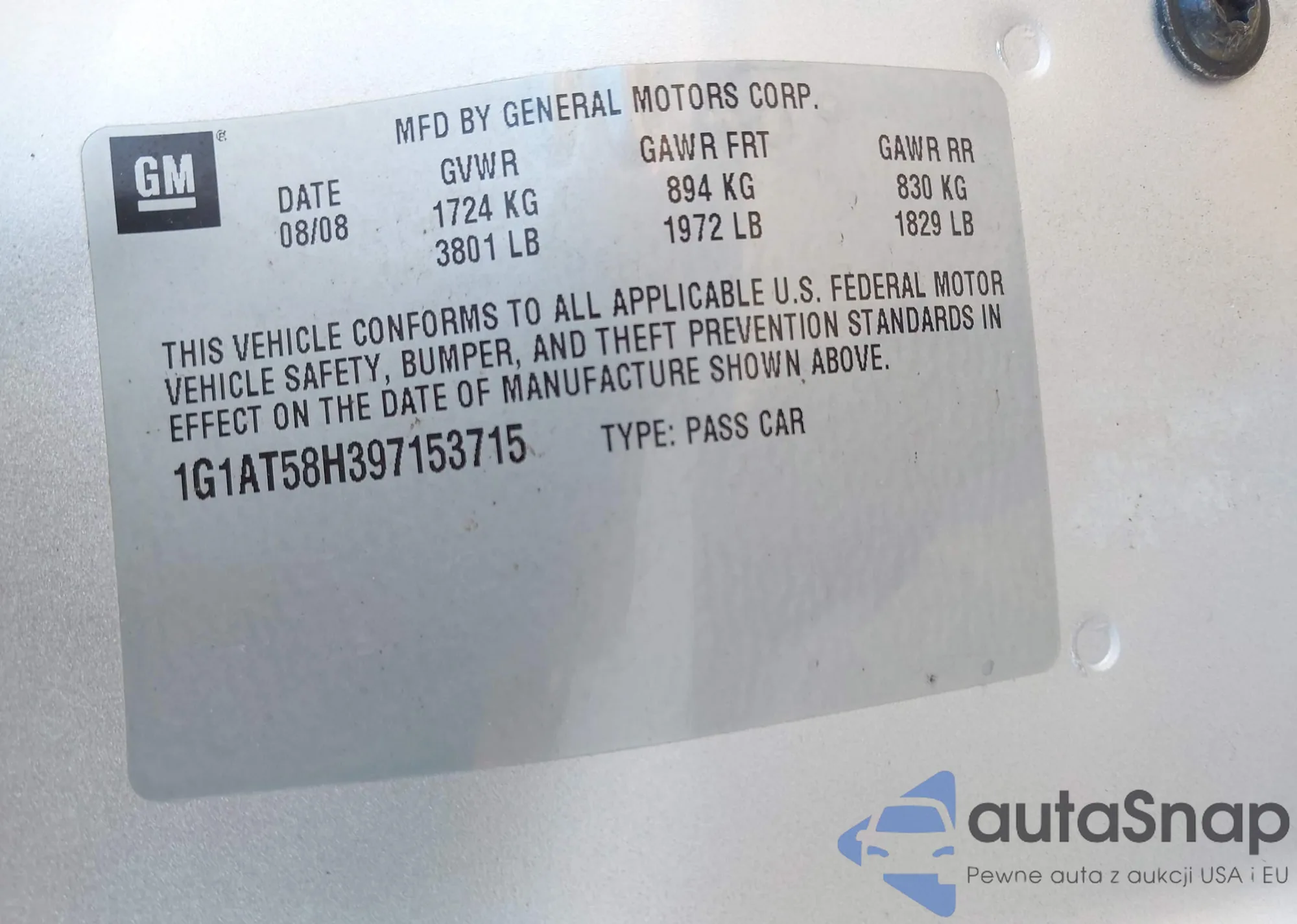 • VIN 1G1105SA4HU144106
