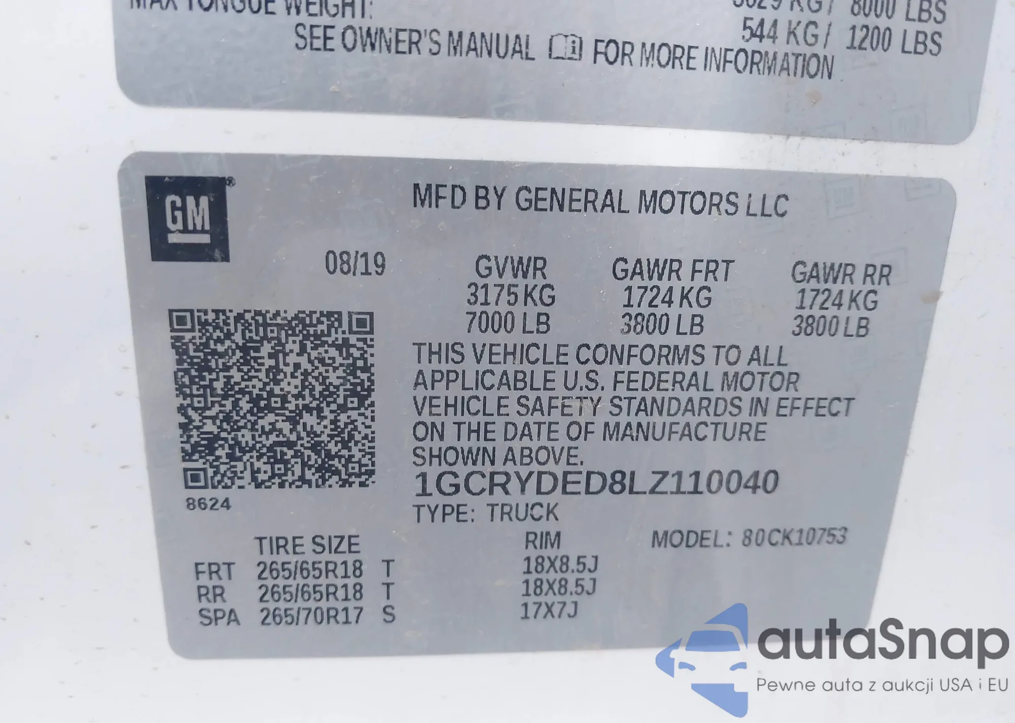 • VIN 1GCRYDED8LZ110040