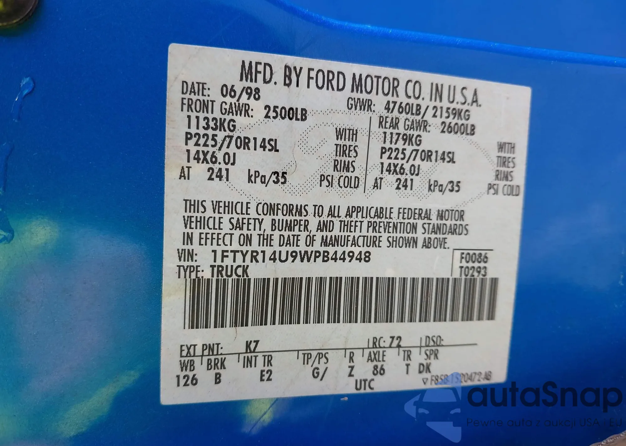 • VIN 1N6AFOLY0MN809007