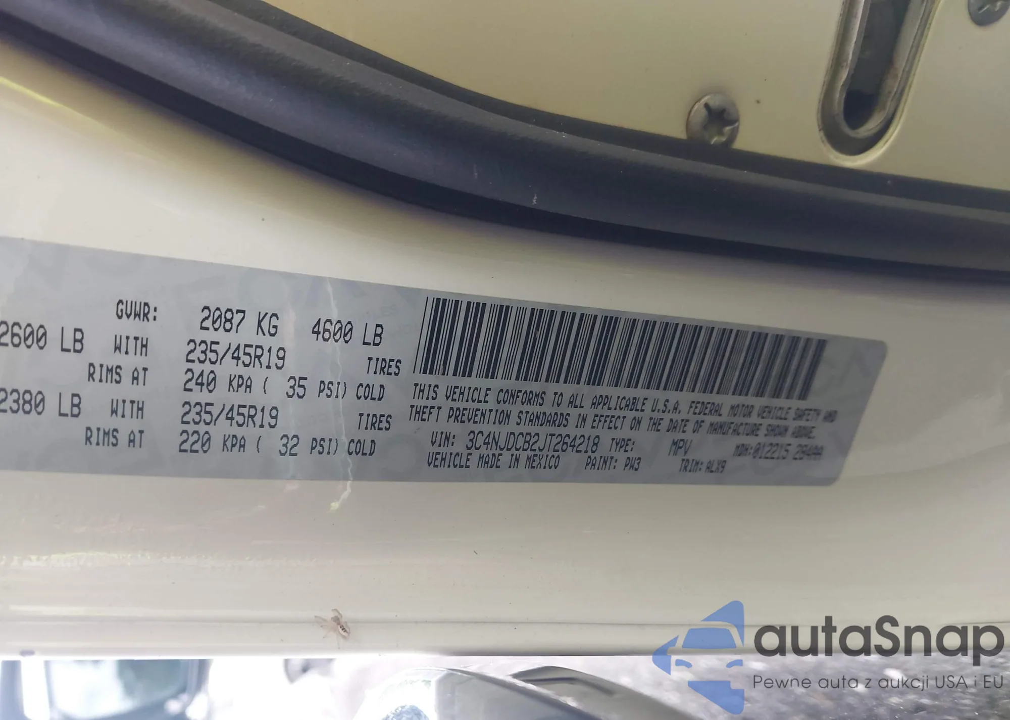 LOT: 43327719 VIN: 3C4NJDBB4JT400754