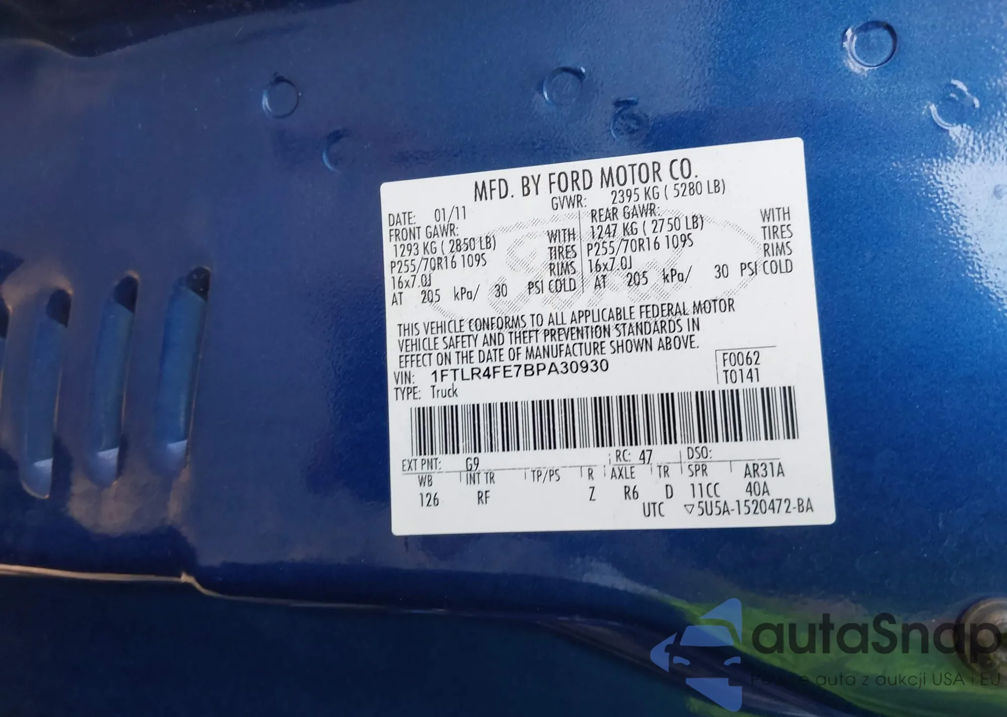 LOT: 43164605 VIN: 1FTLR4FE7BPA30930