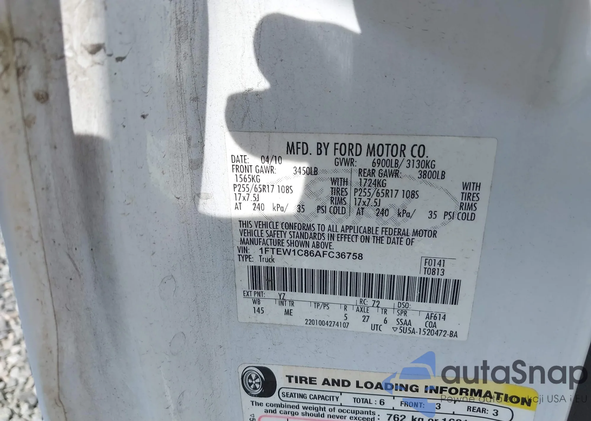• VIN 1FTEW1C86AFC36758