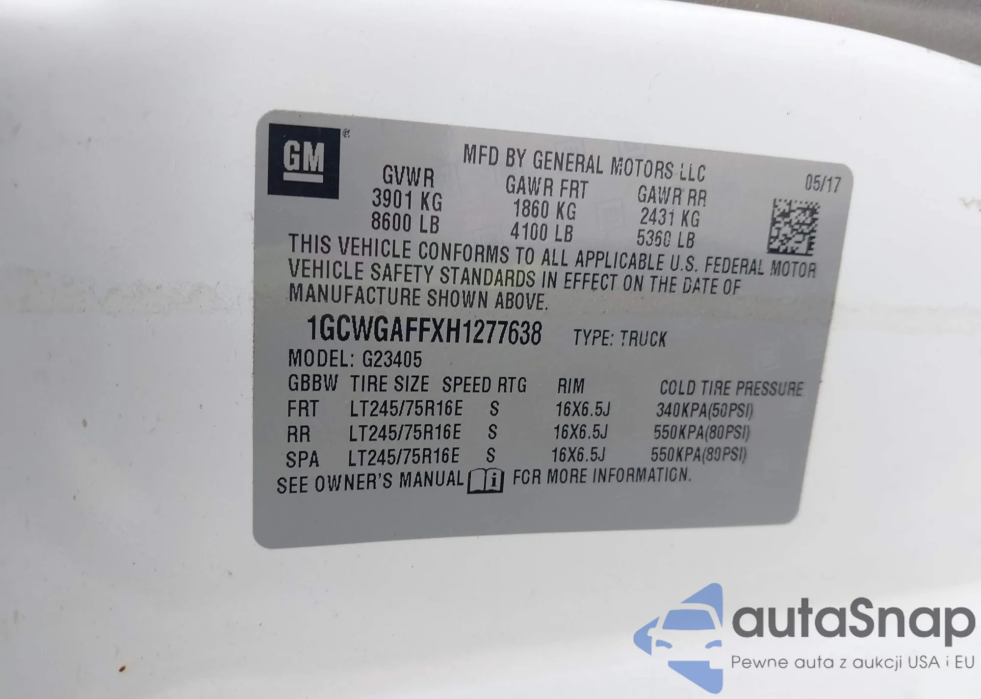 LOT: 43218448 VIN: 1GCWGAFFXH1277638
