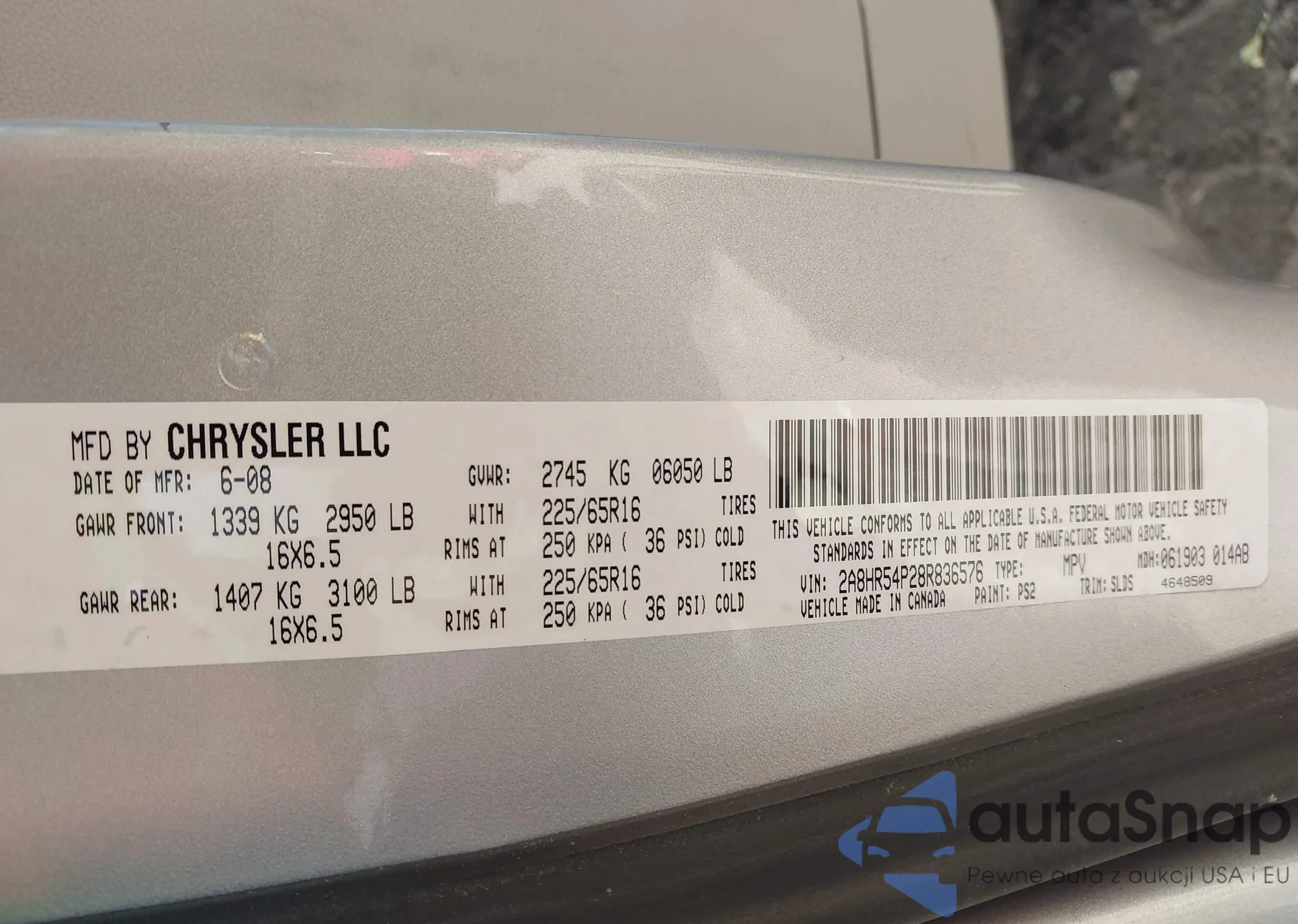 LOT: 43277368 VIN: 2A8HR44H18R102952