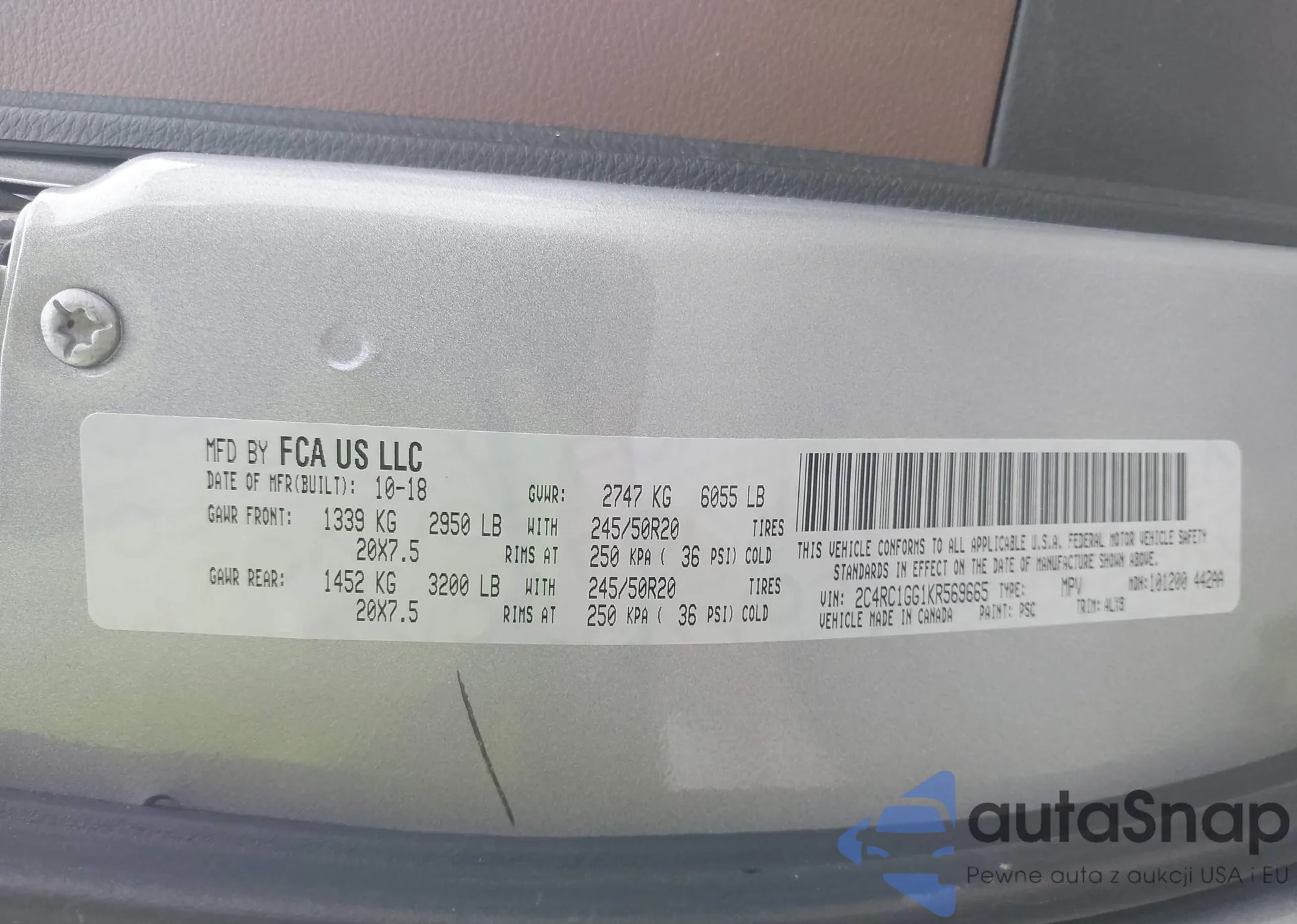• VIN 2C4RC1GG1KR569665