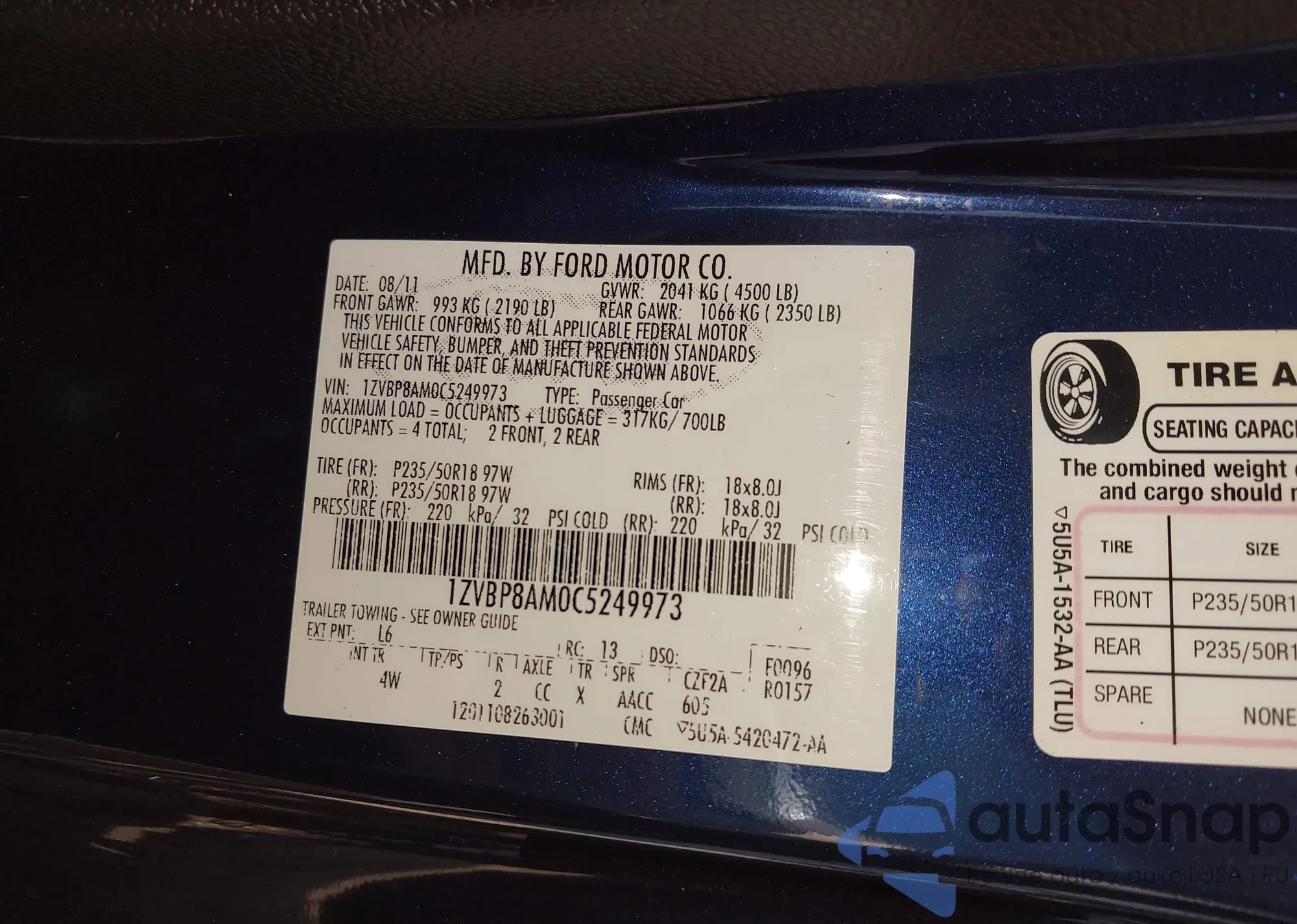 • VIN 1ZVBP8AM0C5249973