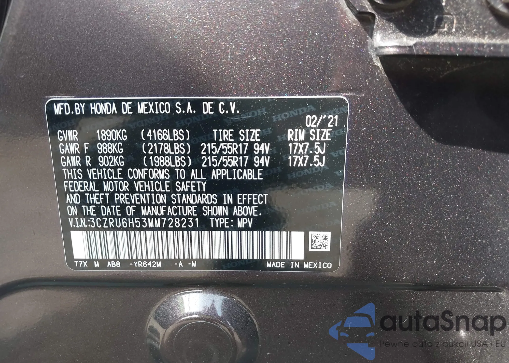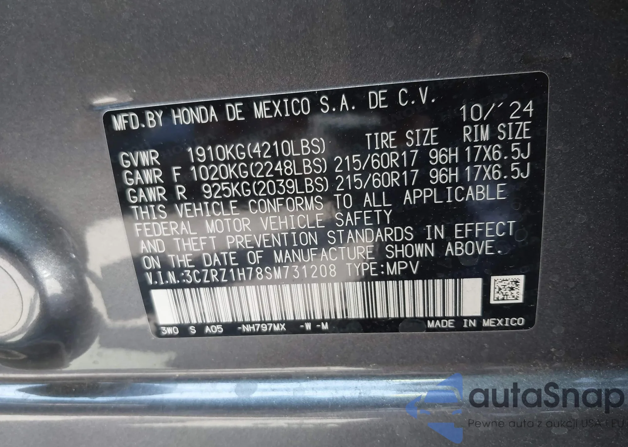 • VIN 3CZRZ1H78SM731208