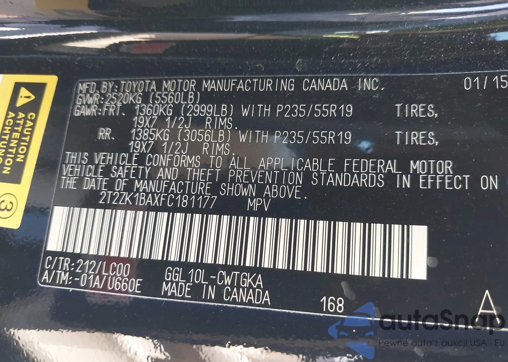 • VIN 2T2ZK1BAXFC181177