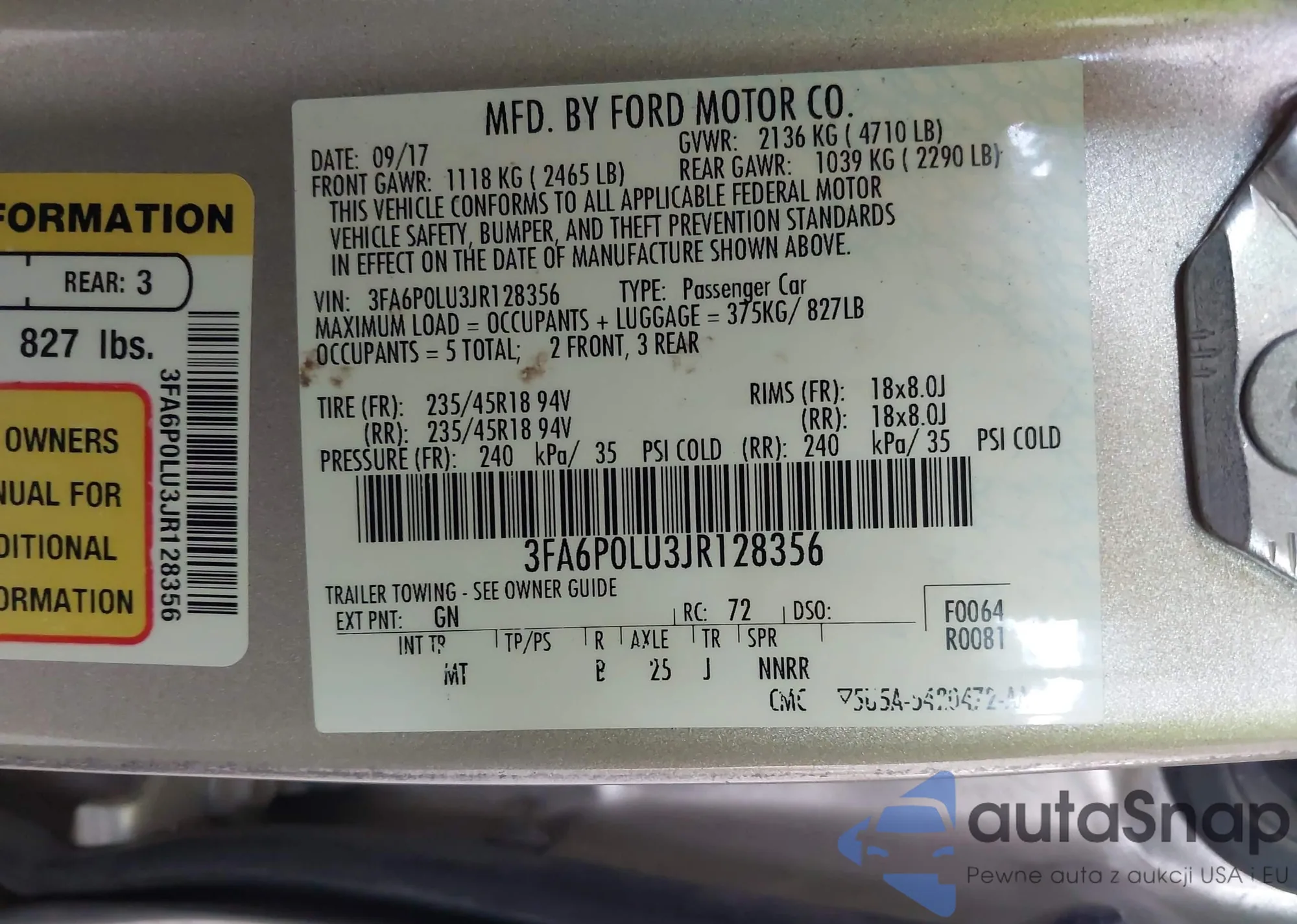 • VIN 3FA6P0LU3JR128356