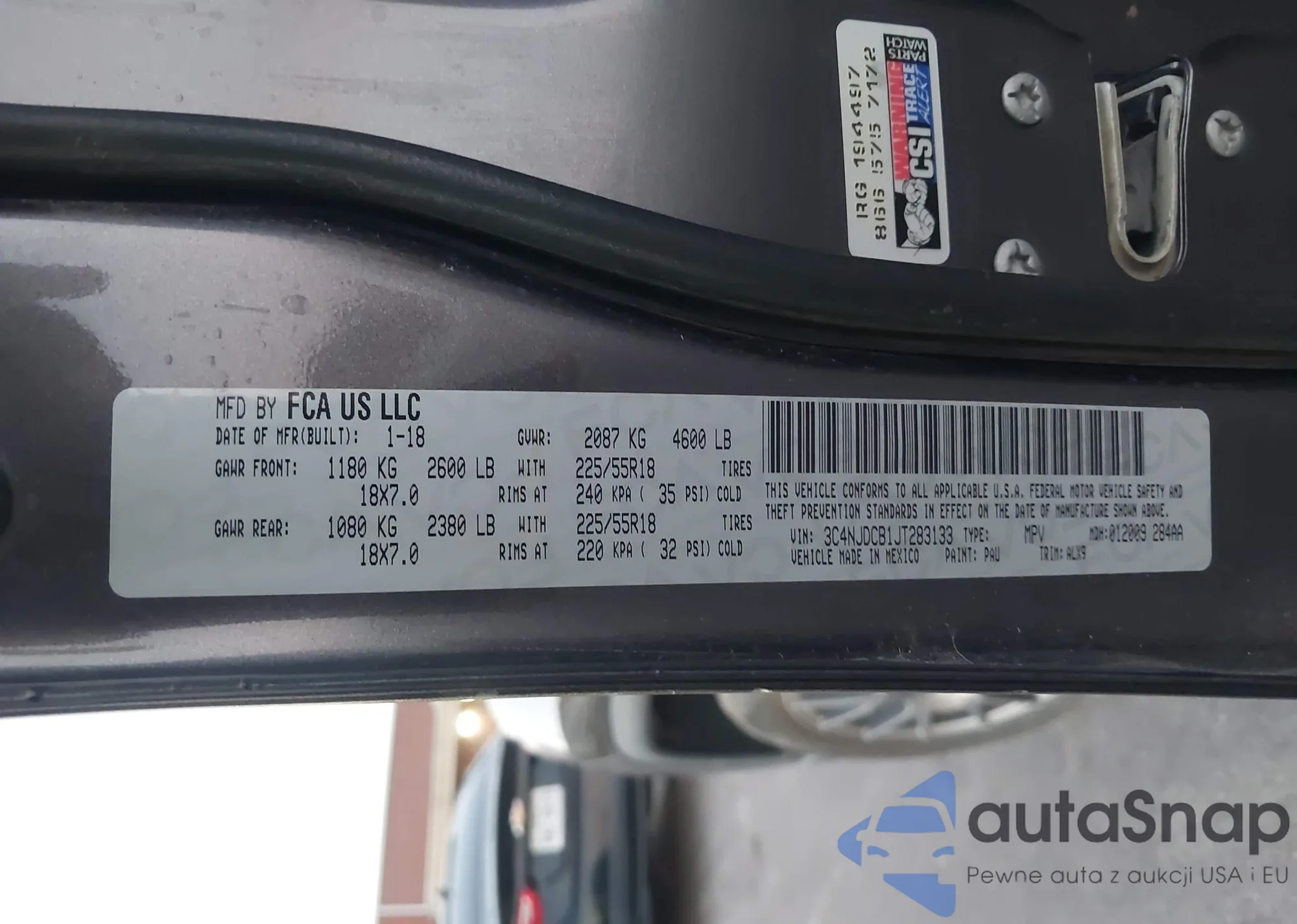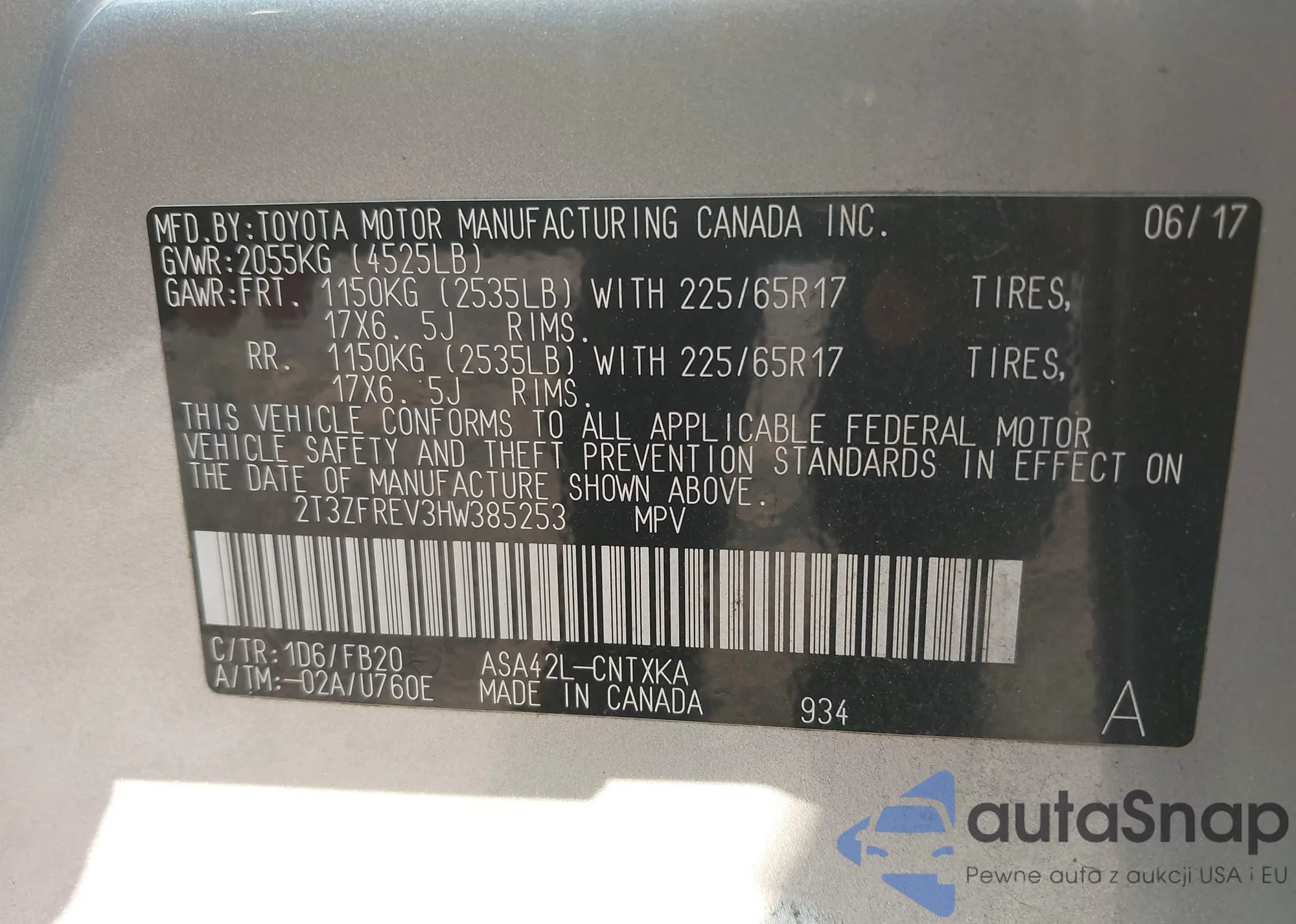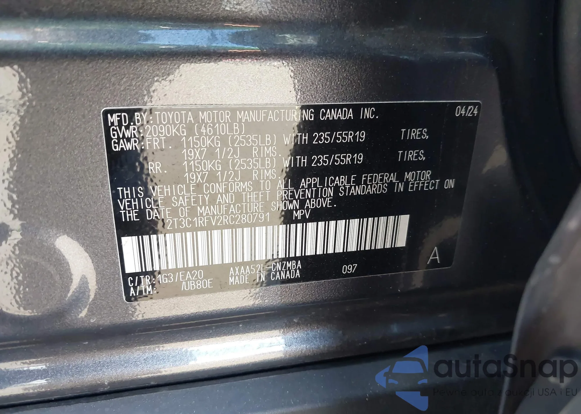 • VIN 2T3J1RFV8KW035005