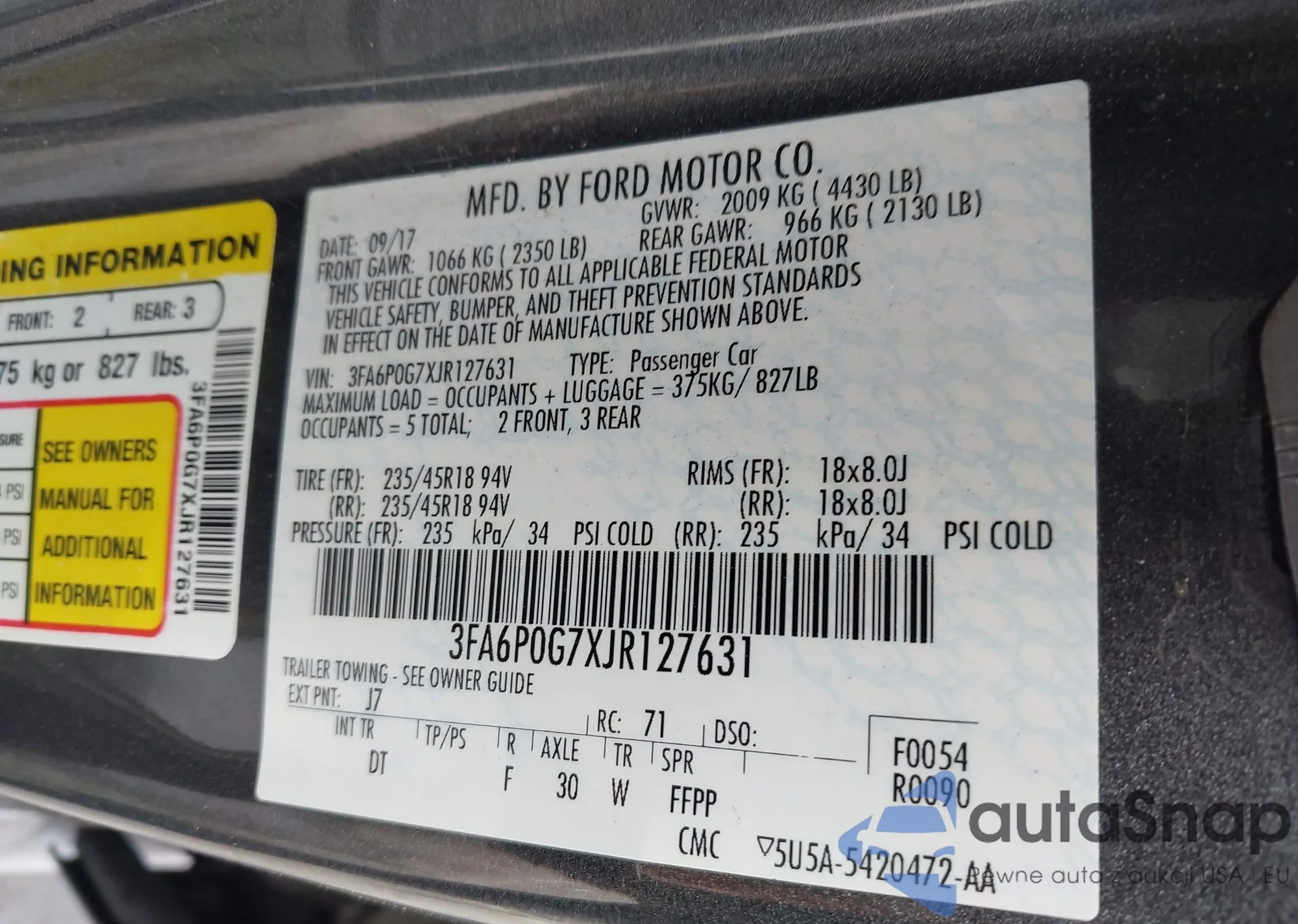 • VIN 3FA6P0G7XJR127631
