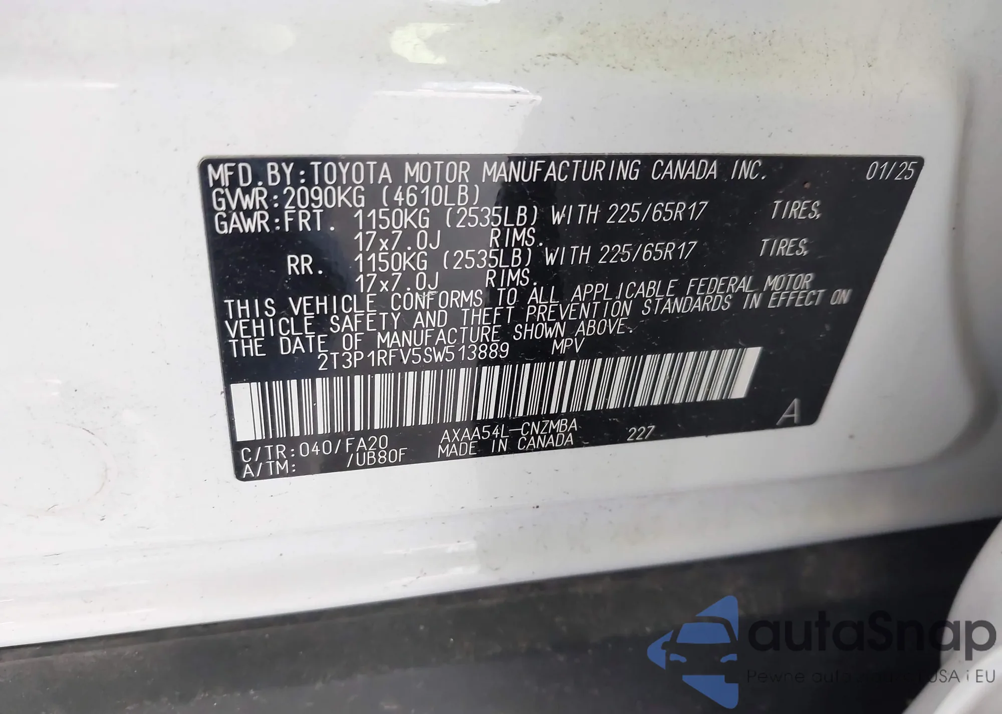 • VIN 2T3P1RFV5SW513889
