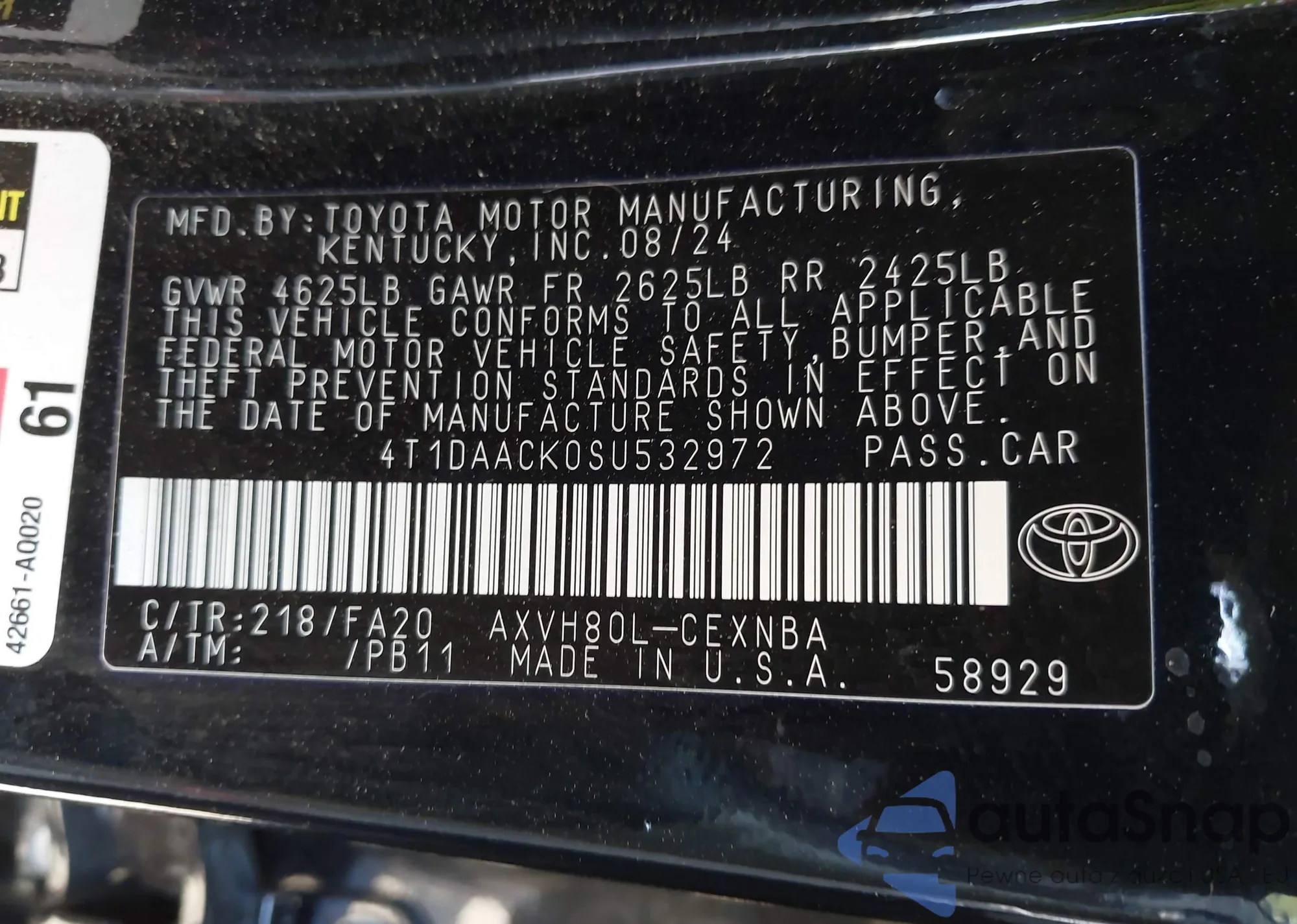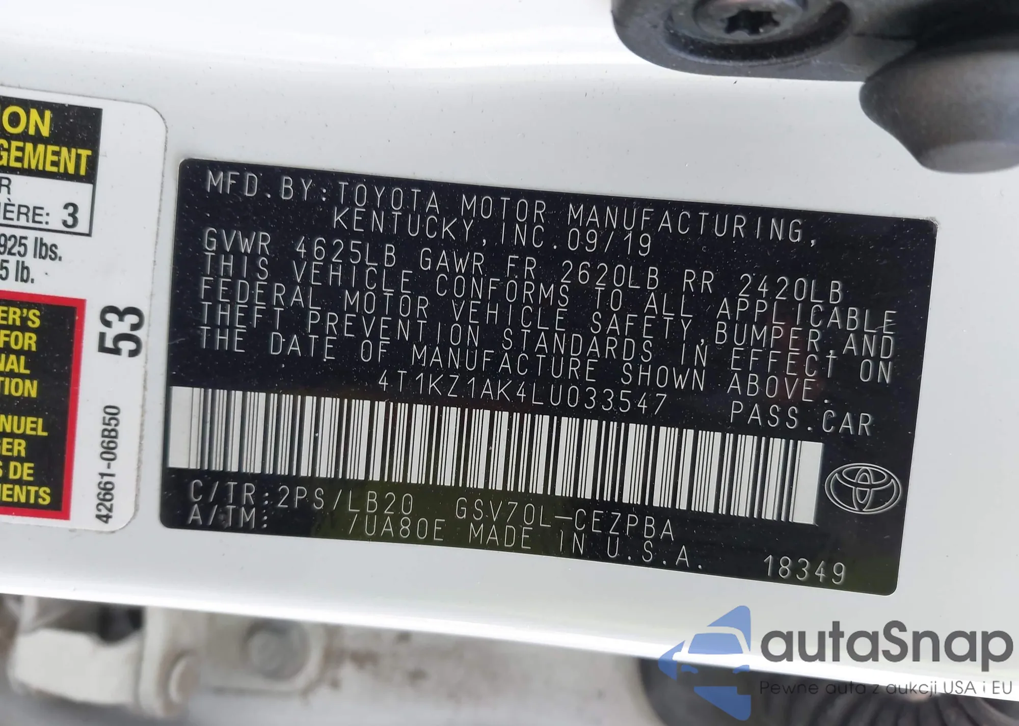 • VIN 4T1AZ1FB8LU044961
