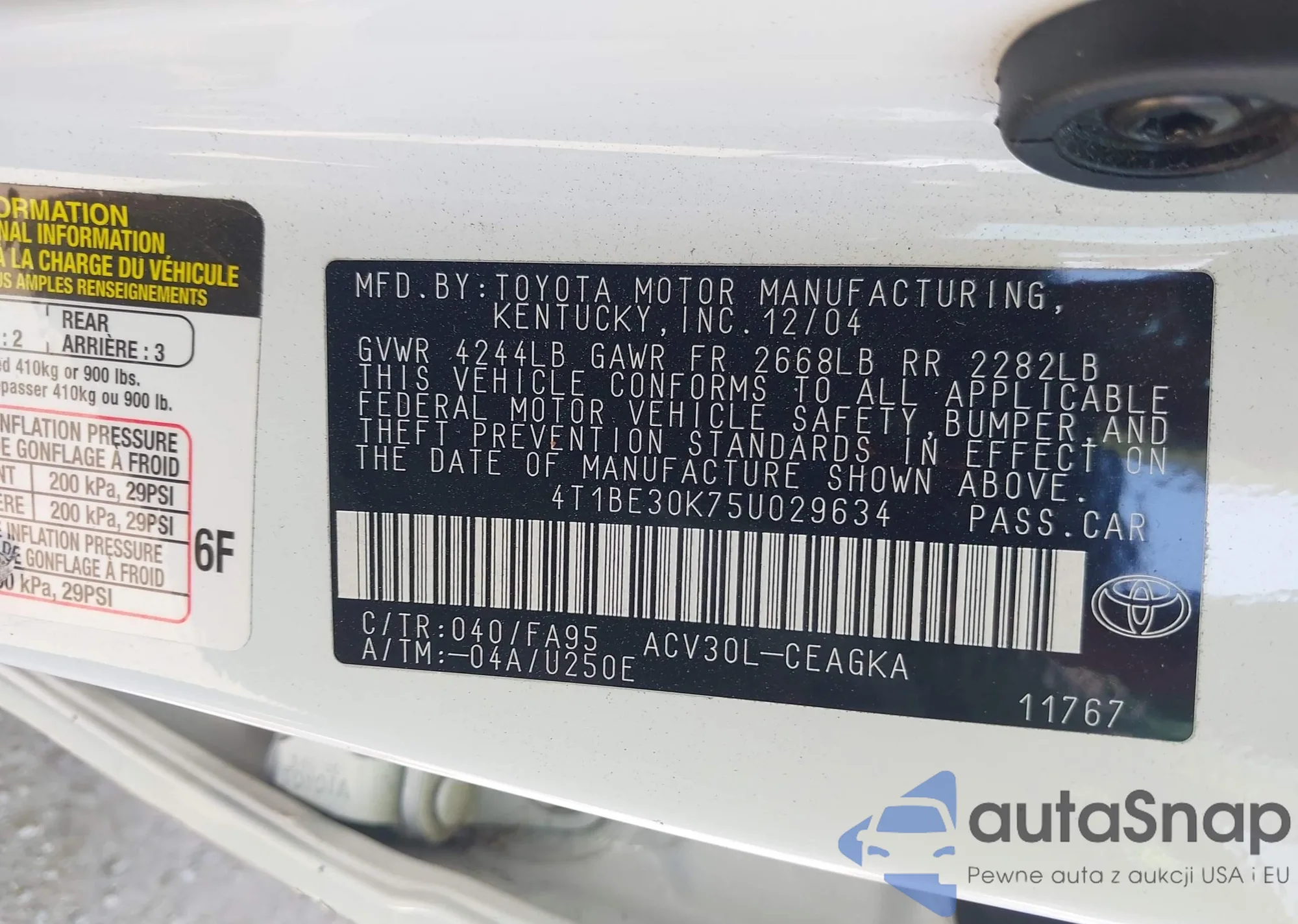• VIN 4T1BE30K75U029634