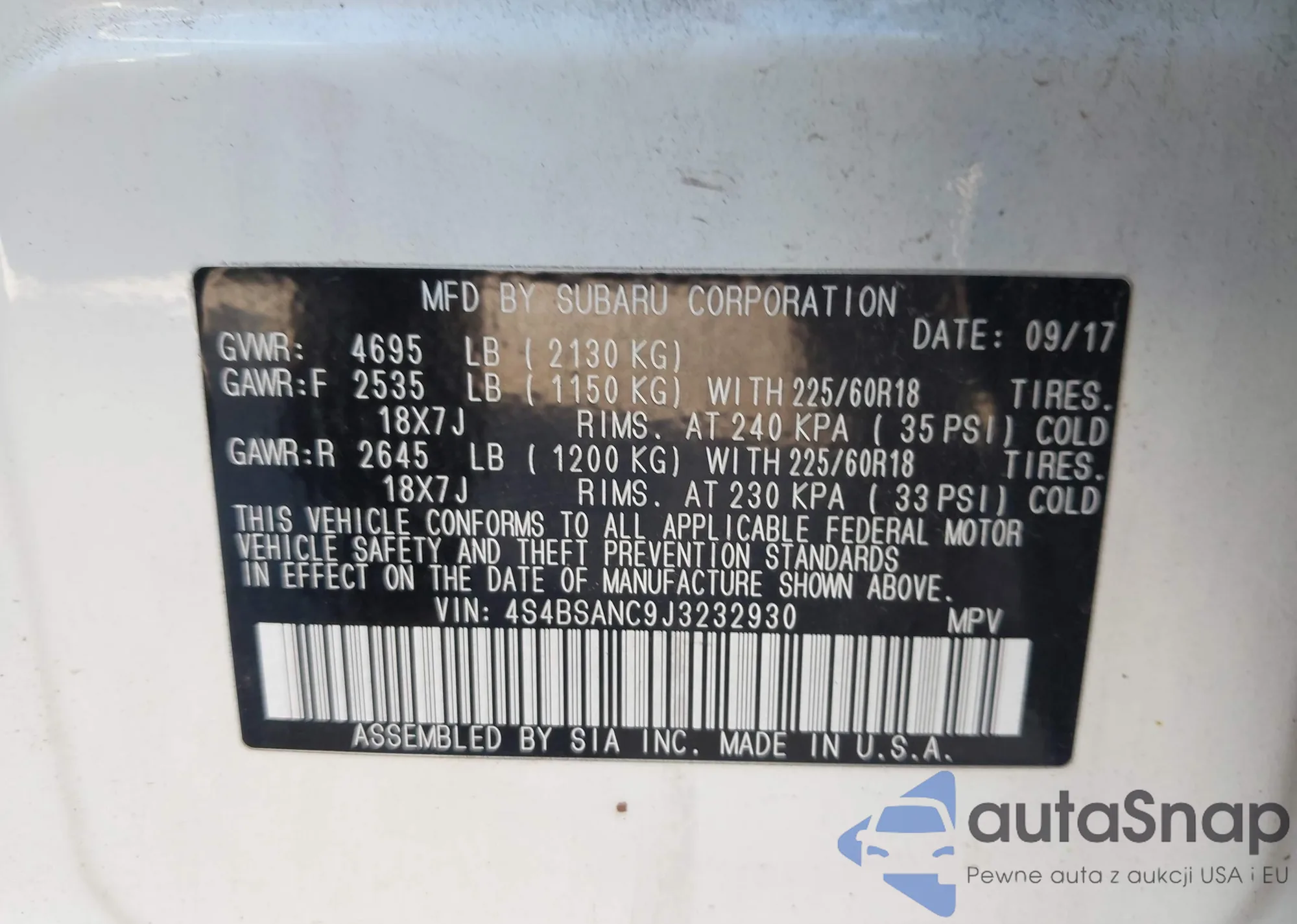 • VIN 4S4BSANC9J3232930