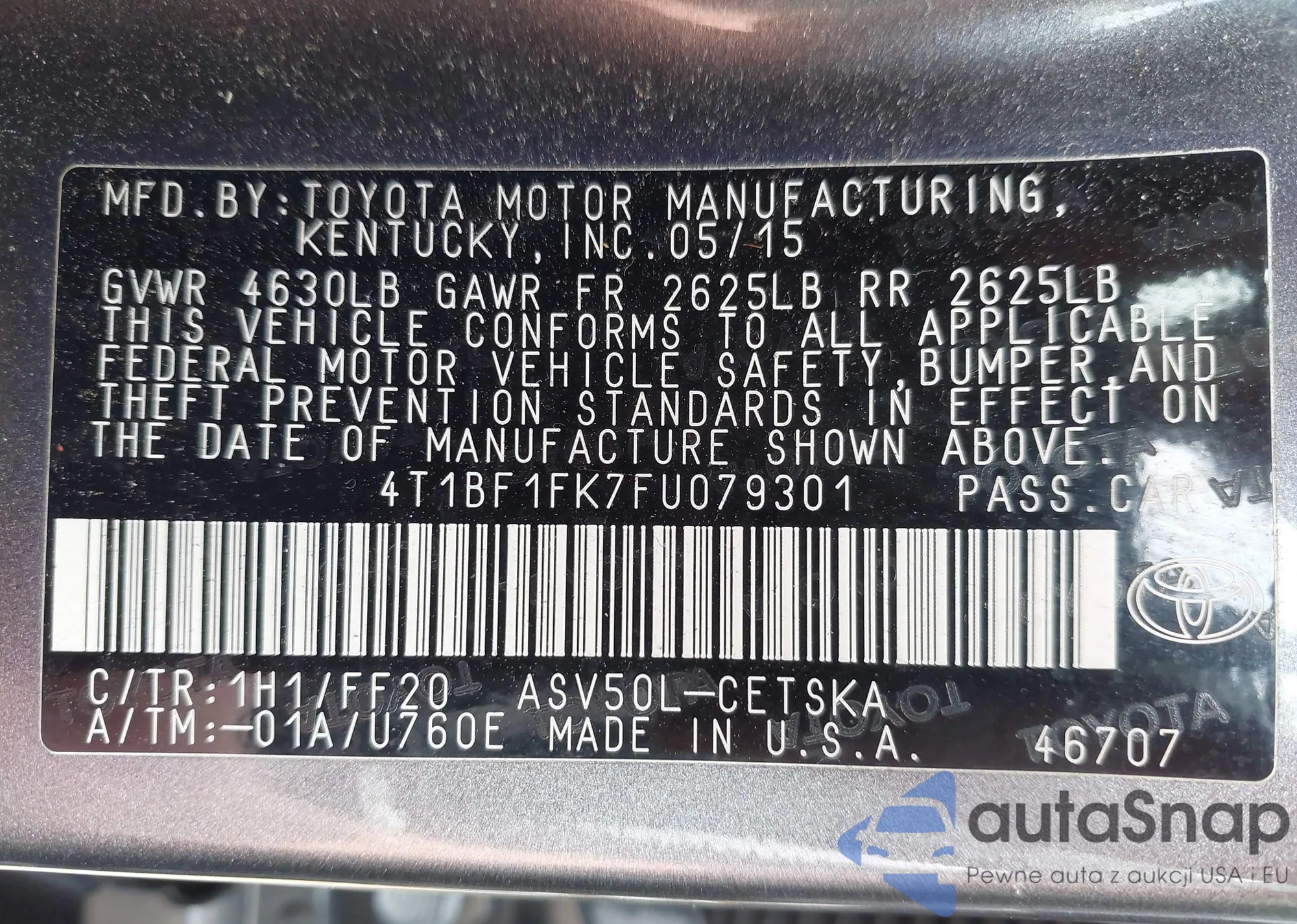 • VIN 4T1R11AK7NU030828