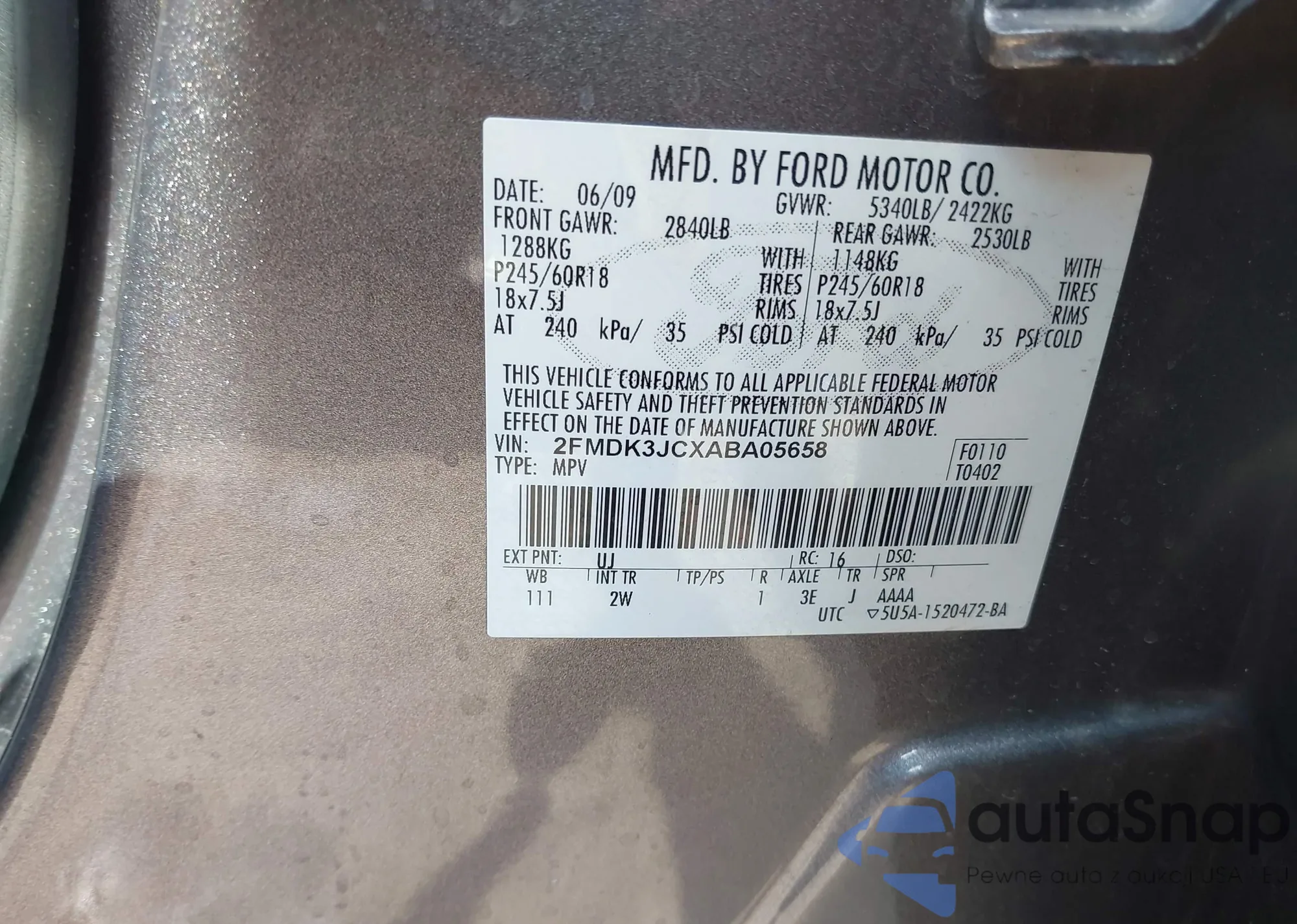 • VIN 2FMDK3JCXABA05658