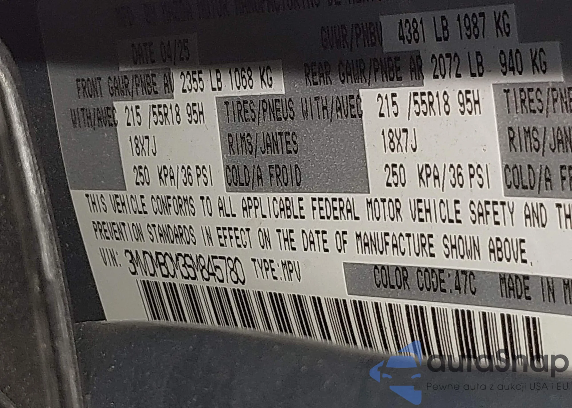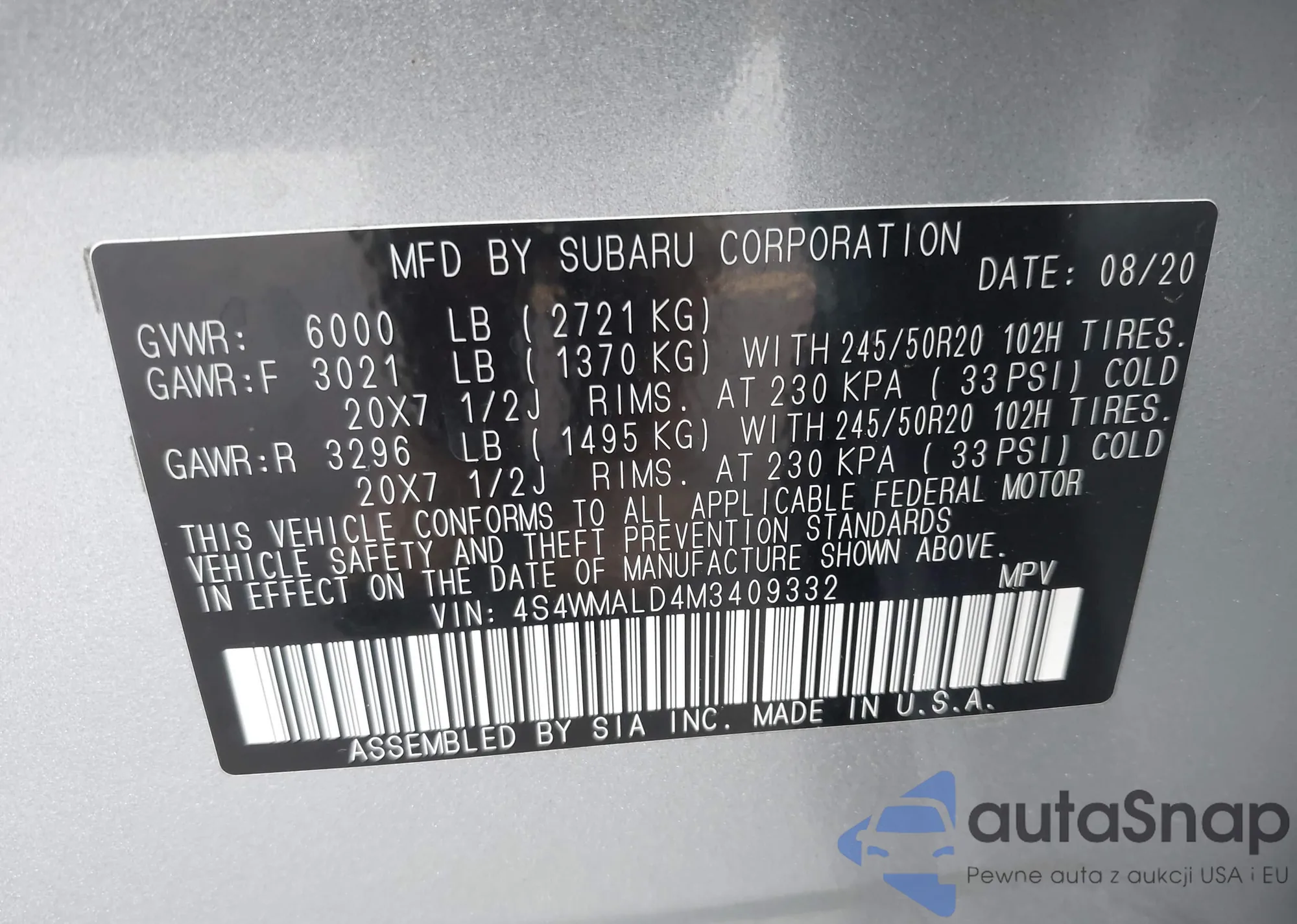 LOT: 43180228 VIN: 4S4BTANC3M3158339