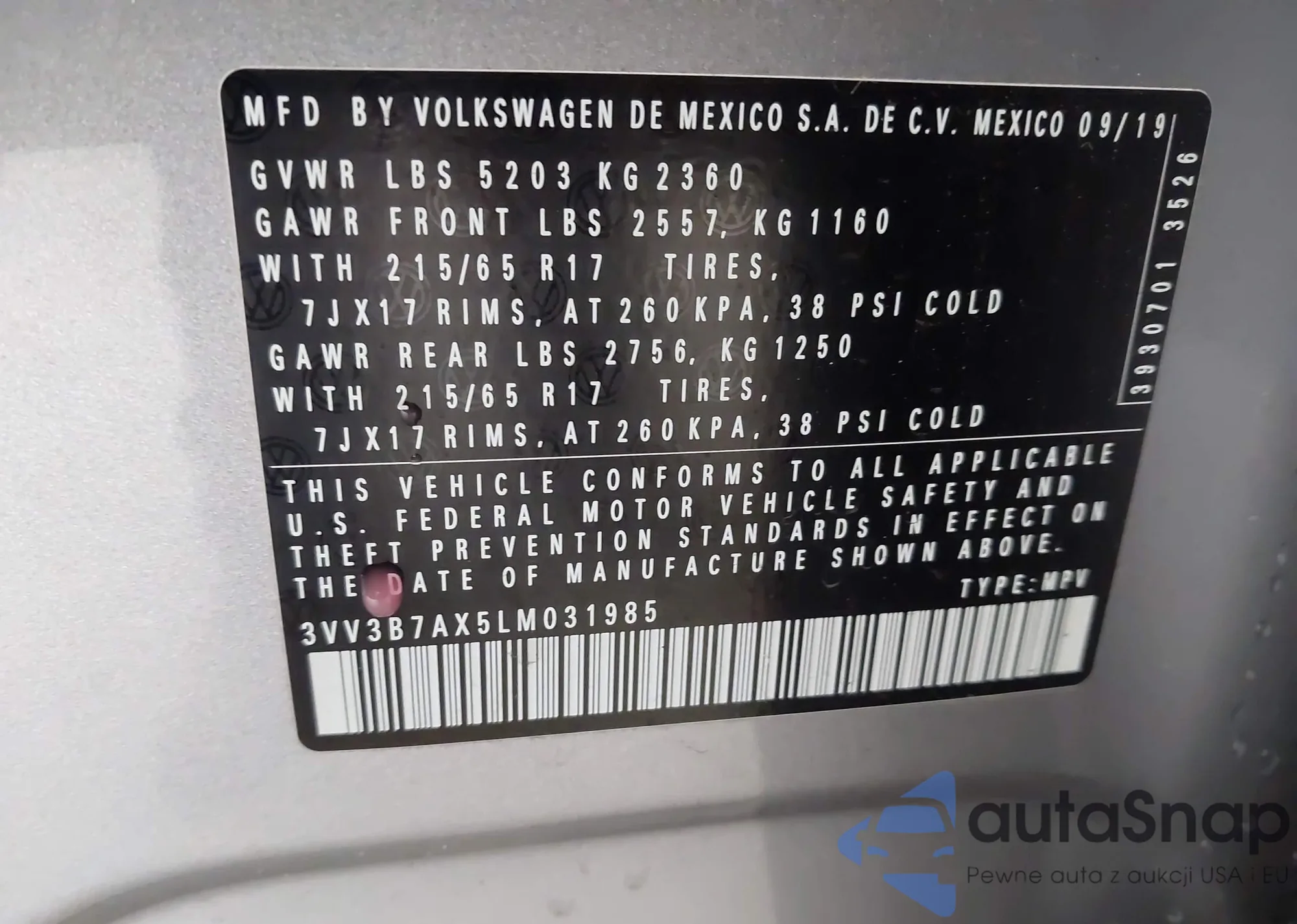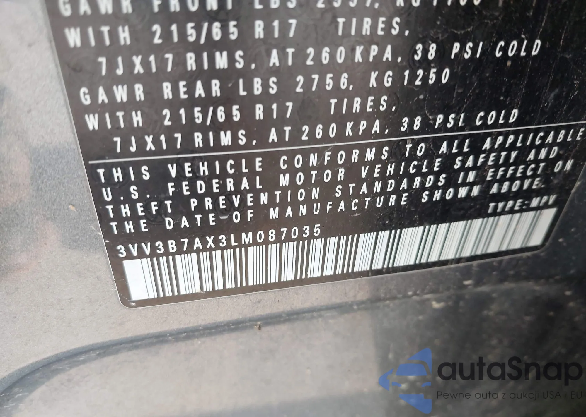 LOT: 43183337 VIN: 3VV3B7AX3LM087035