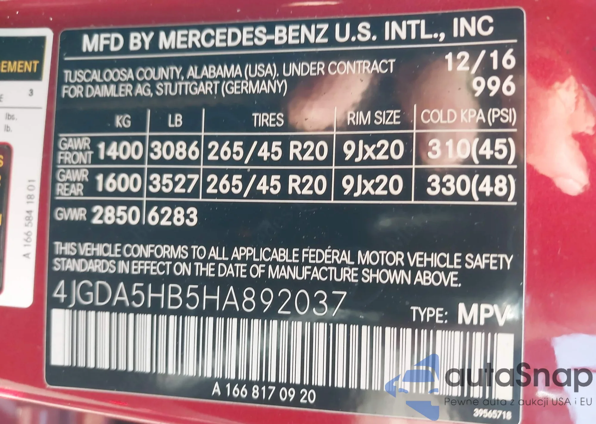• VIN 4JGFB4KB3MA516813