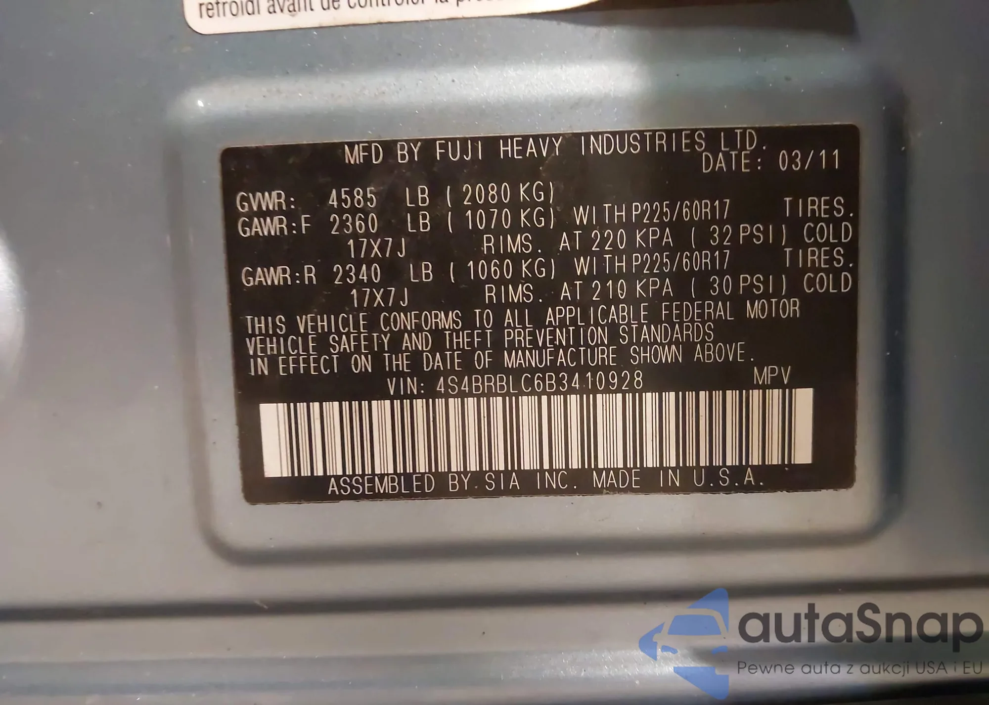 • VIN 4S4BRBLC6B3410928