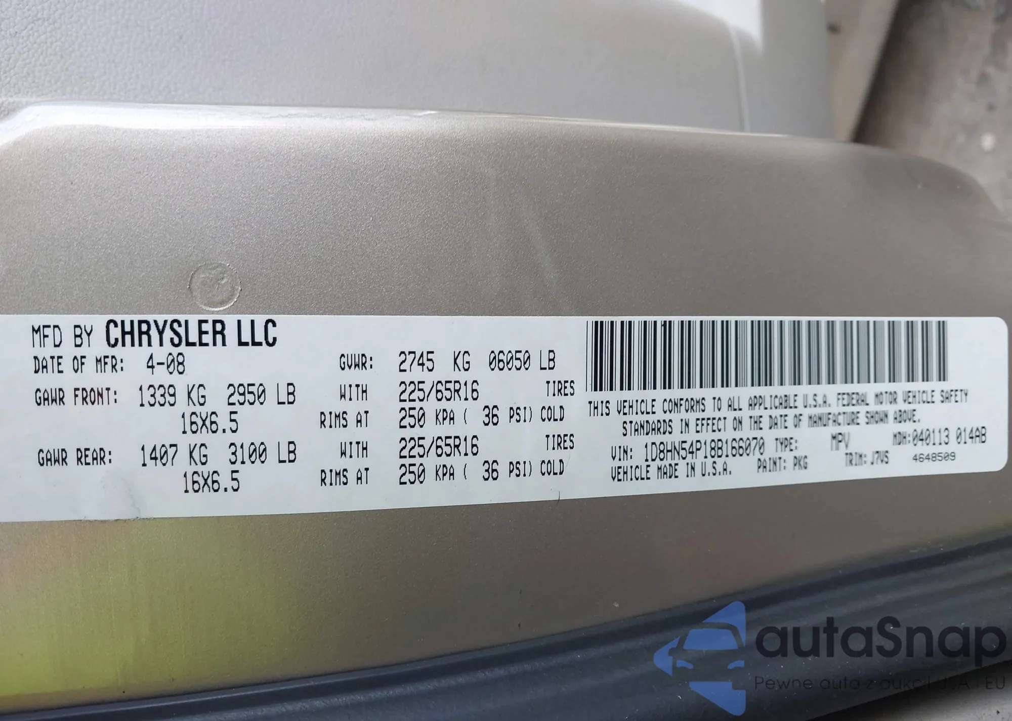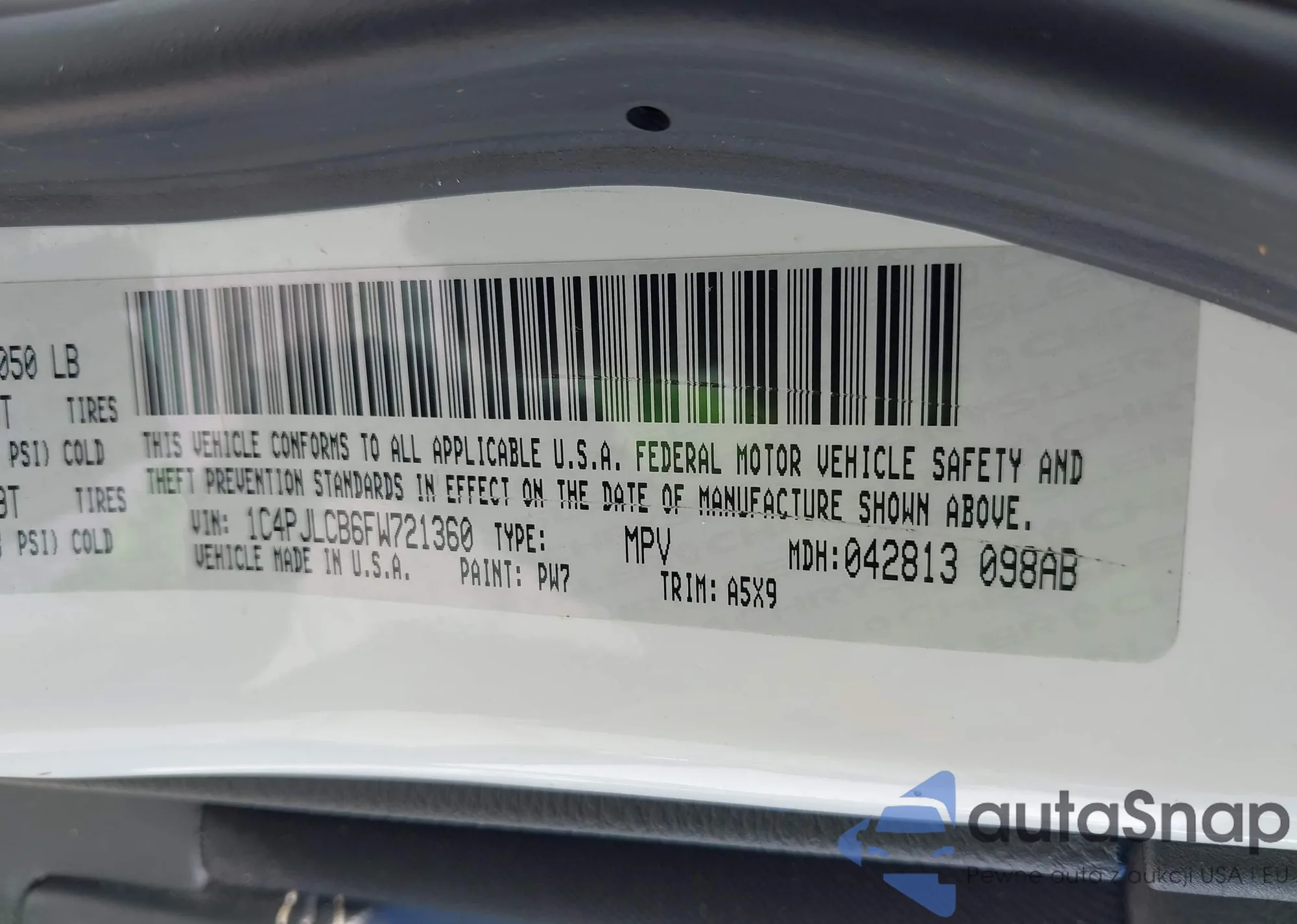 • VIN 1C4RJFBG8JC509044