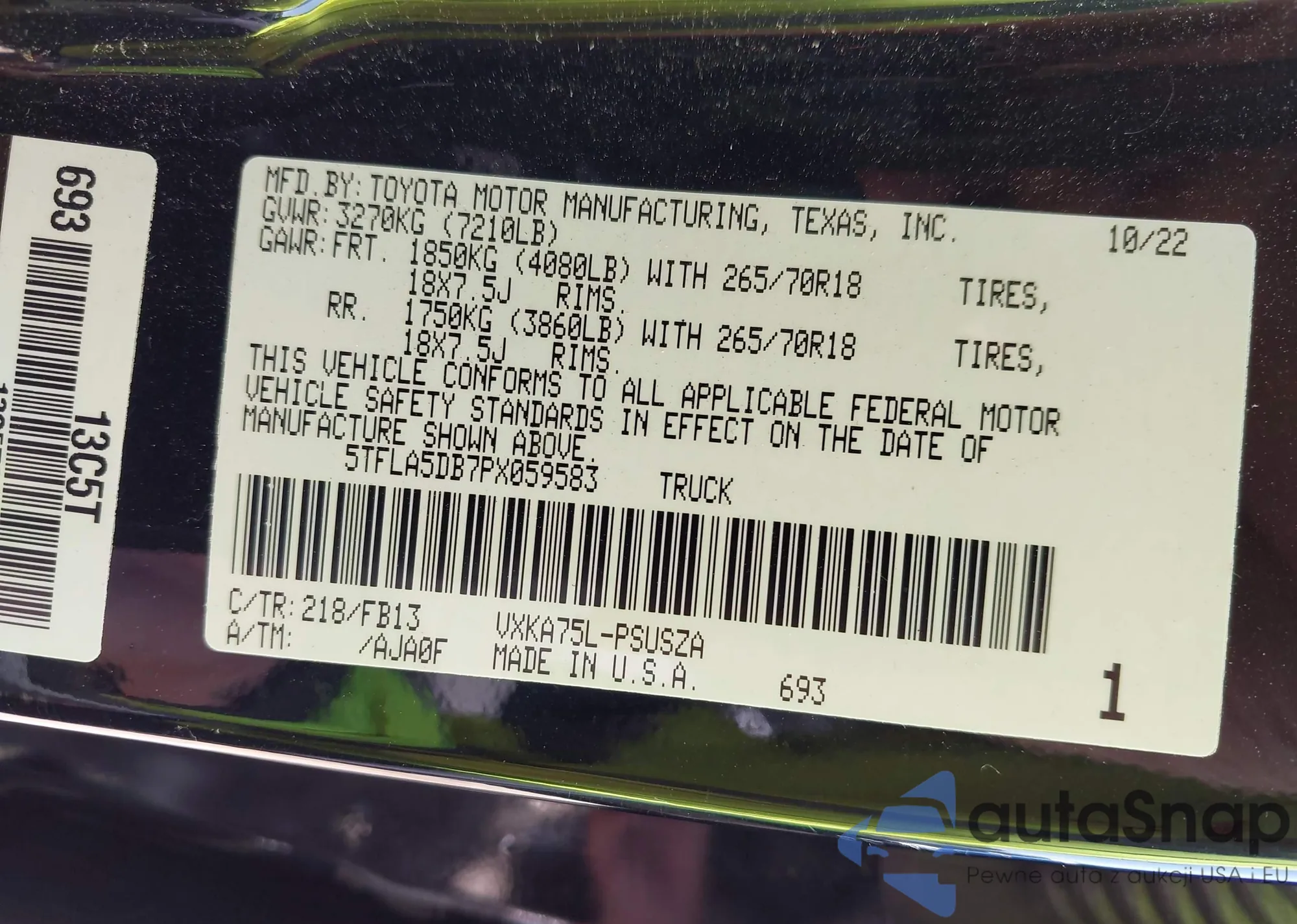 • VIN 5TFLA5DB7PX059583