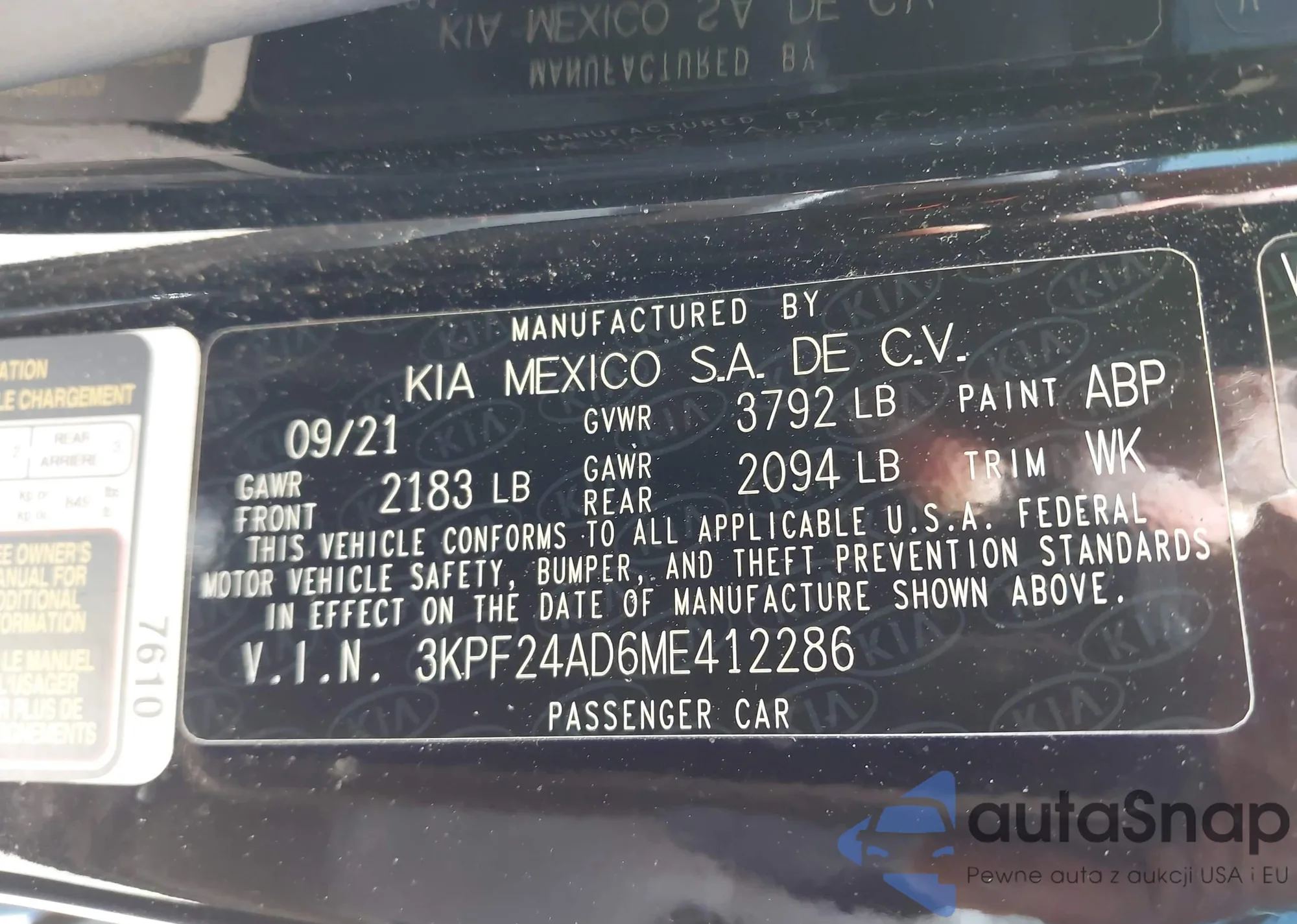 • VIN 3KPF24AD6ME412286