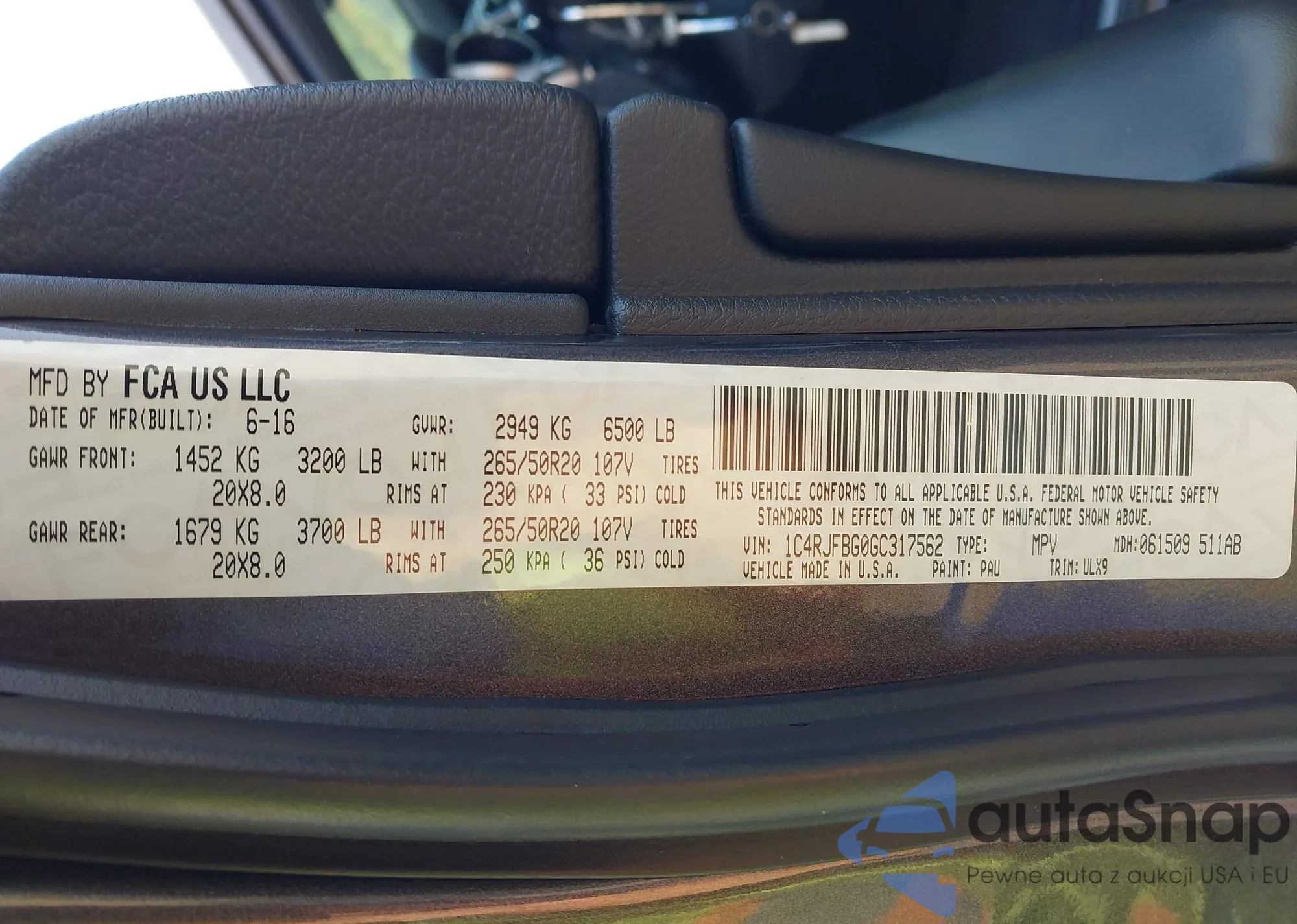 • VIN 1C4RJFBG0GC317562