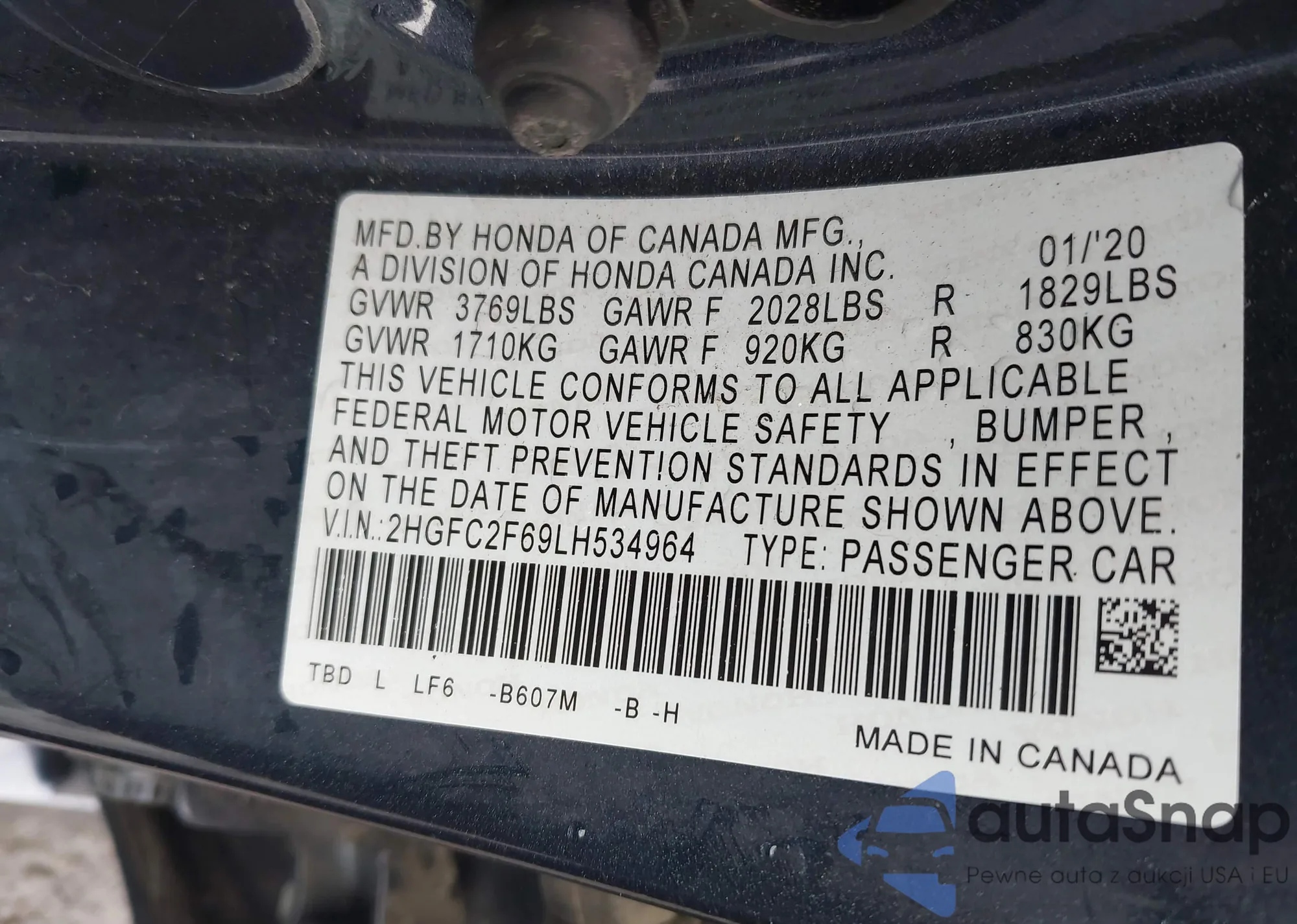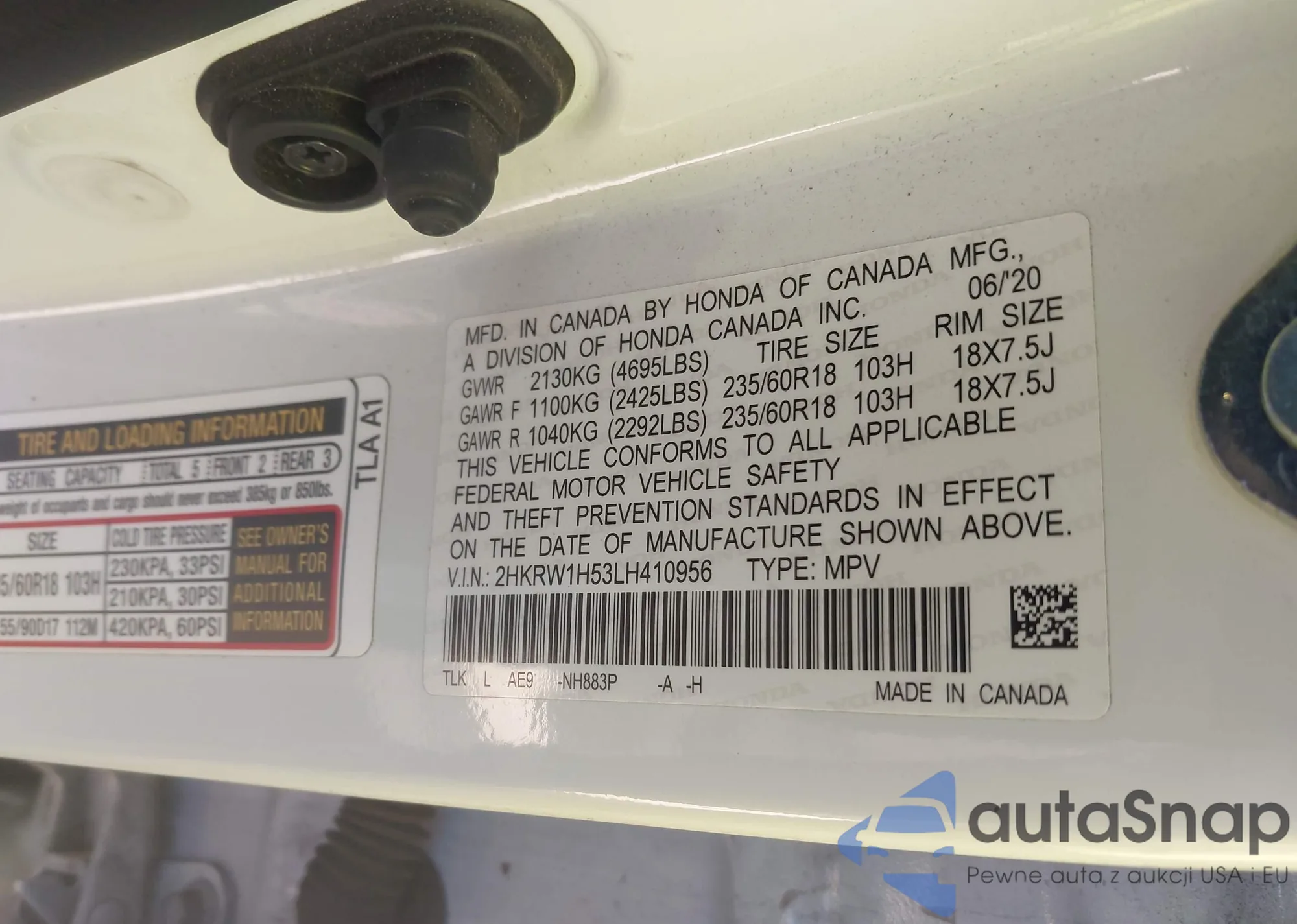 • VIN 2HKRW1H53LH410956