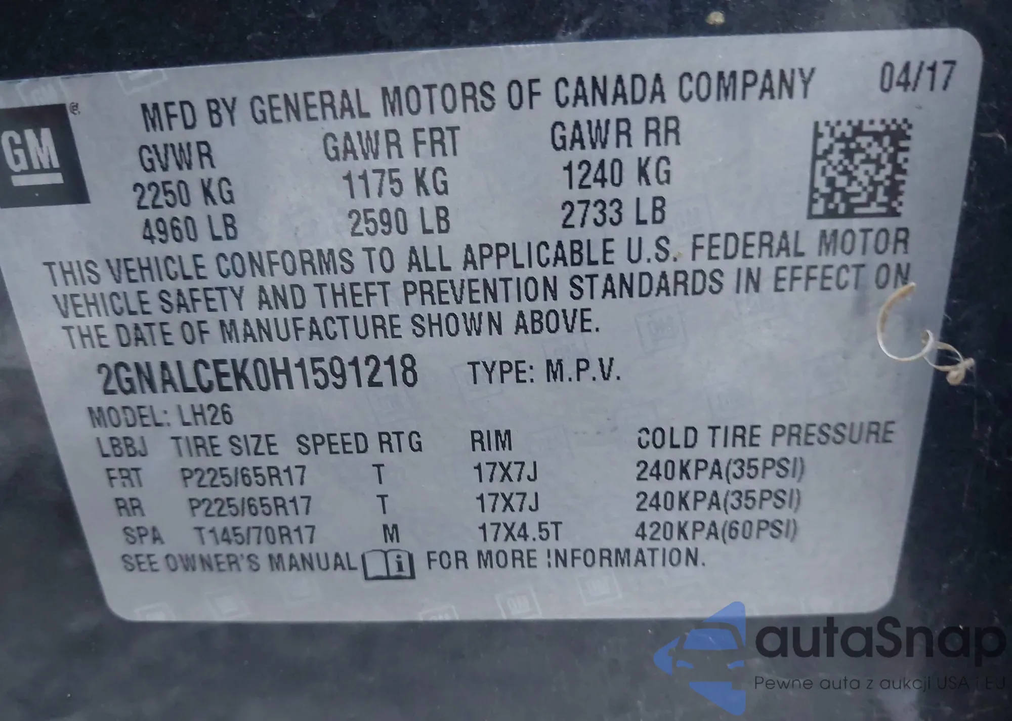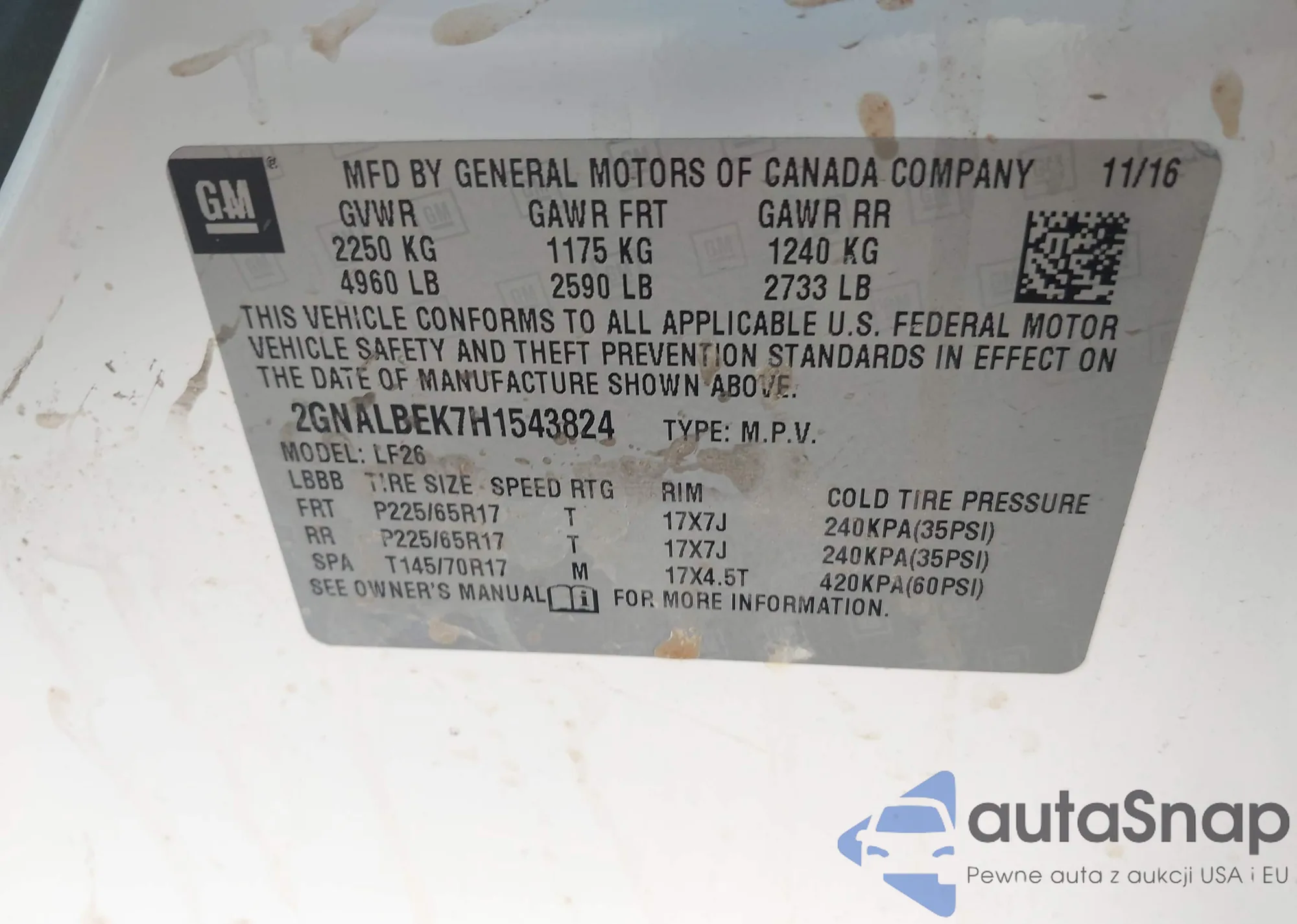 • VIN 2GNALBEK7H1543824
