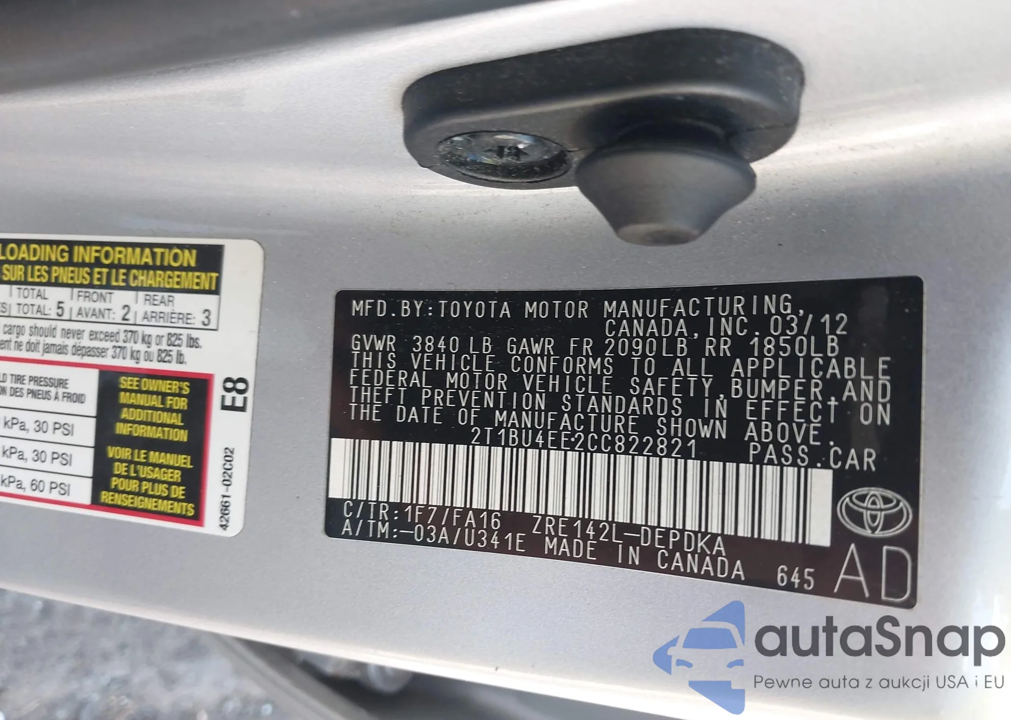 • VIN 2T1BU4EE2CC822821