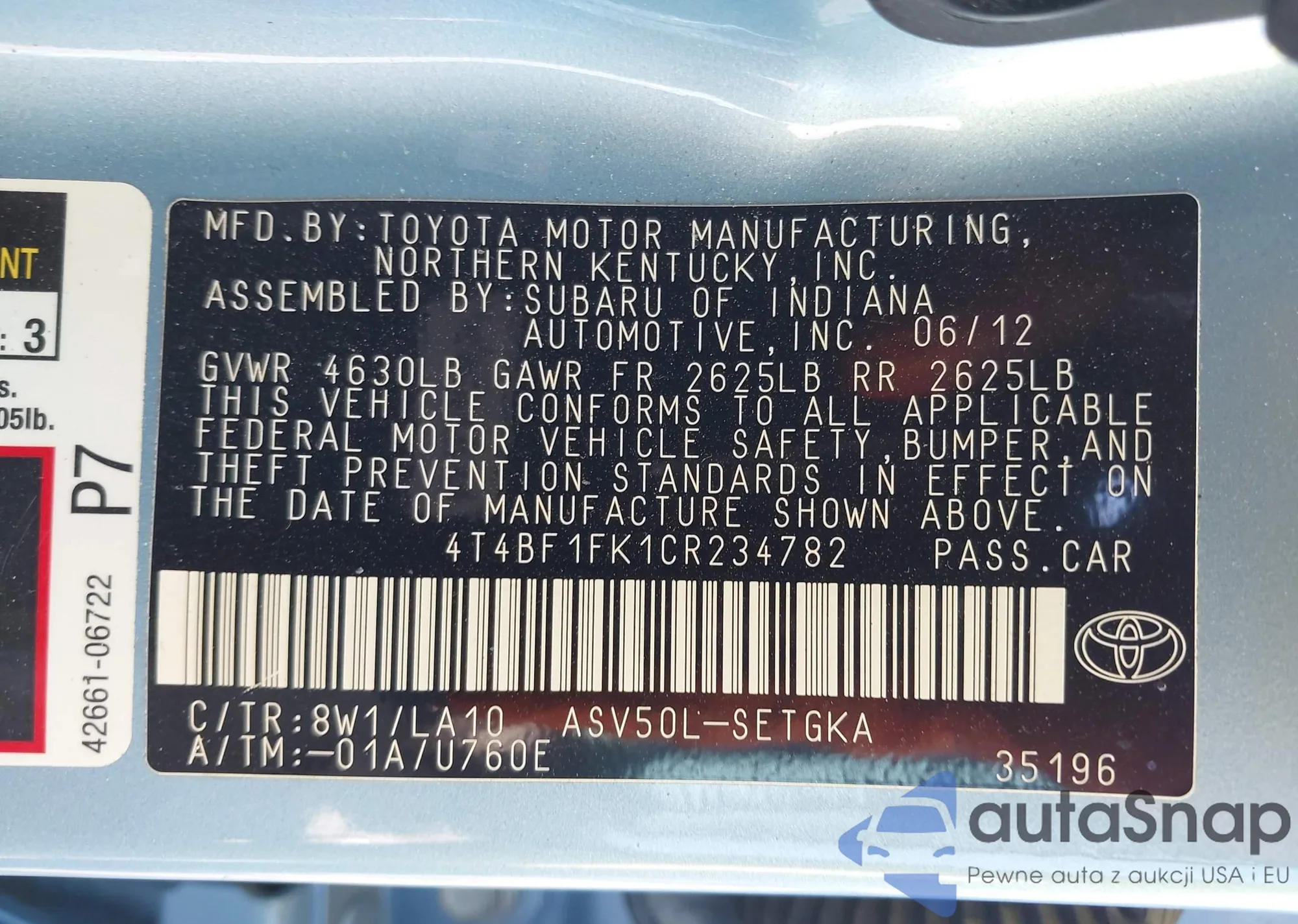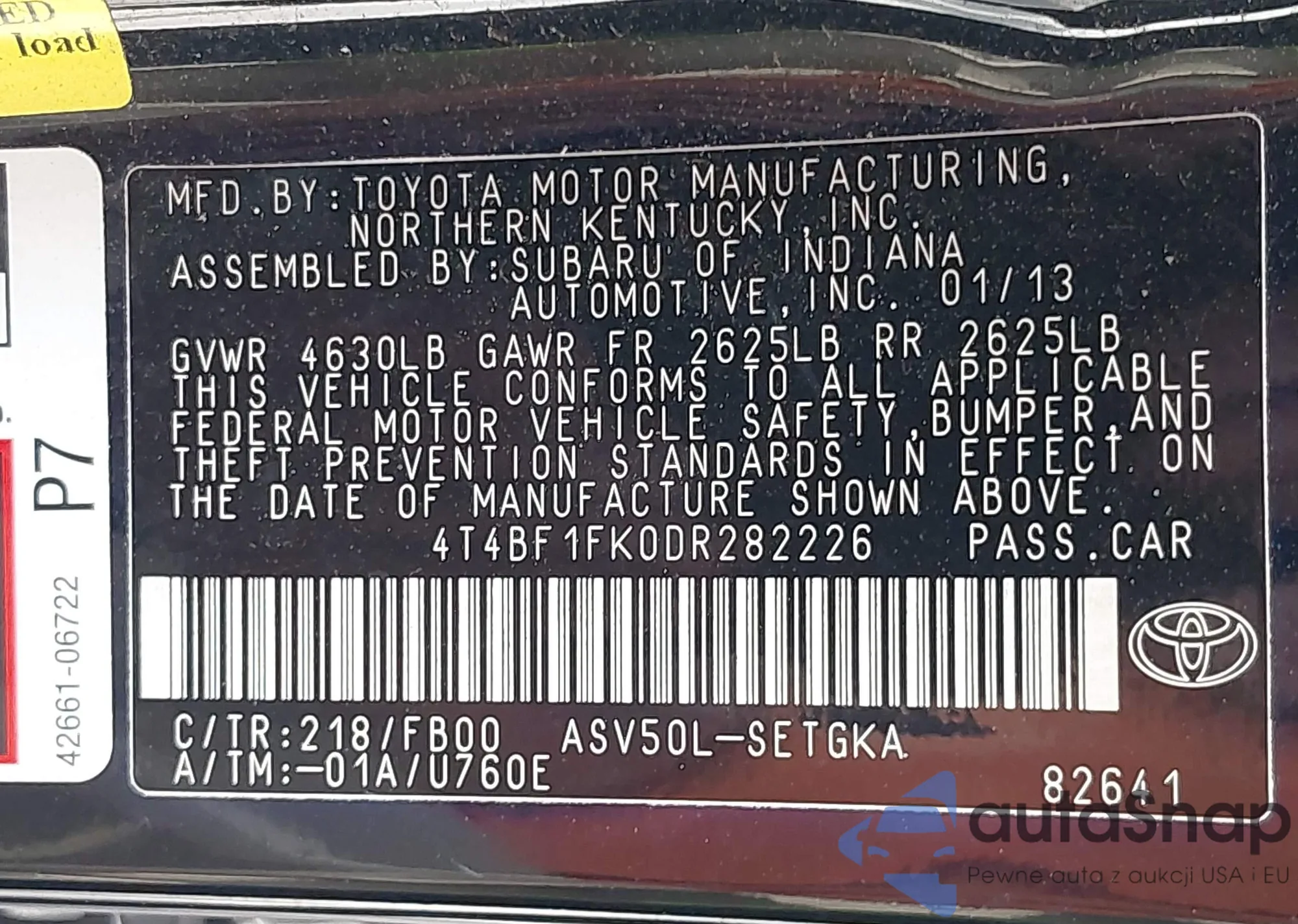 • VIN 4T4BF1FK0DR282226