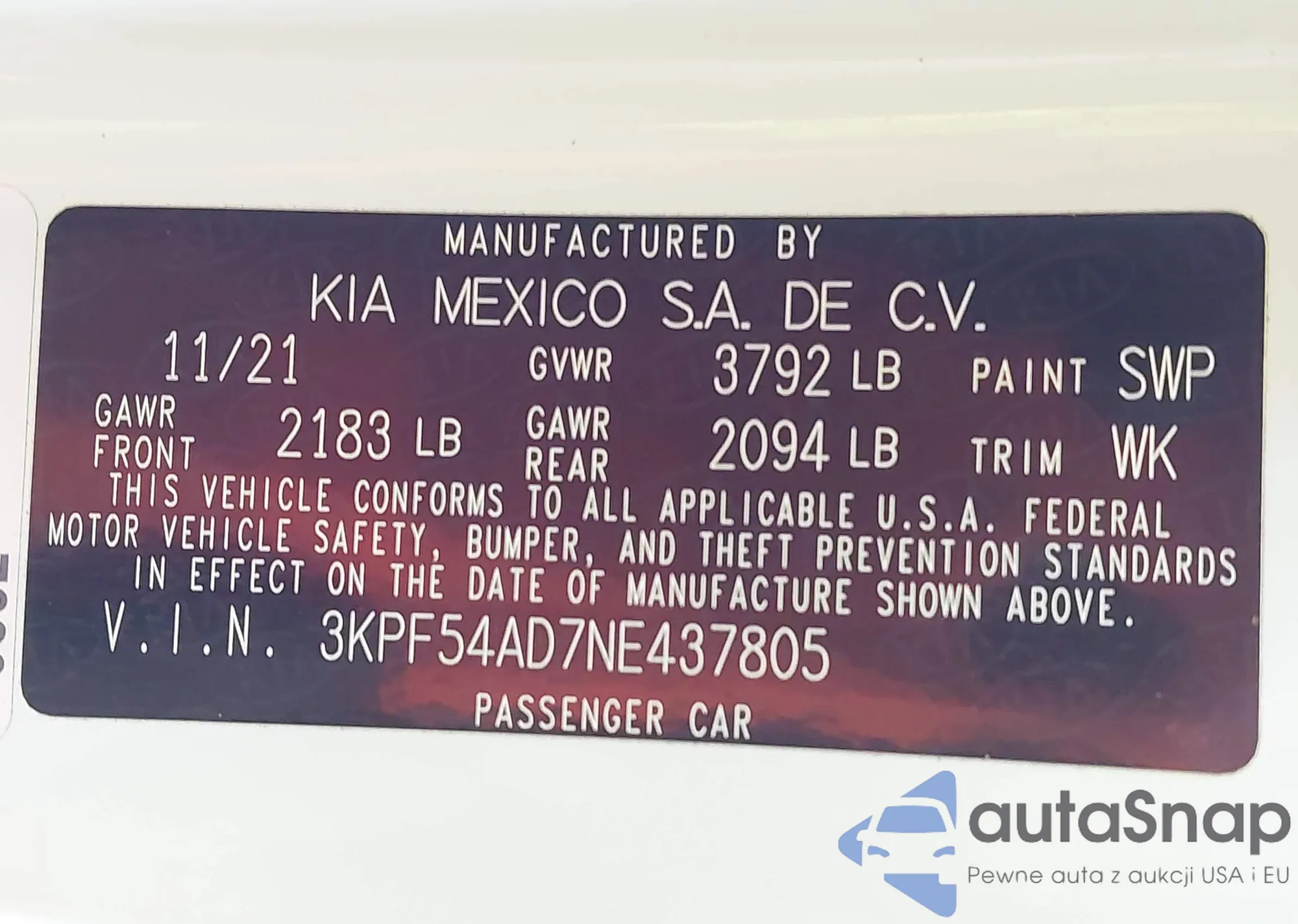 • VIN 4T4BF1FK1DR327495