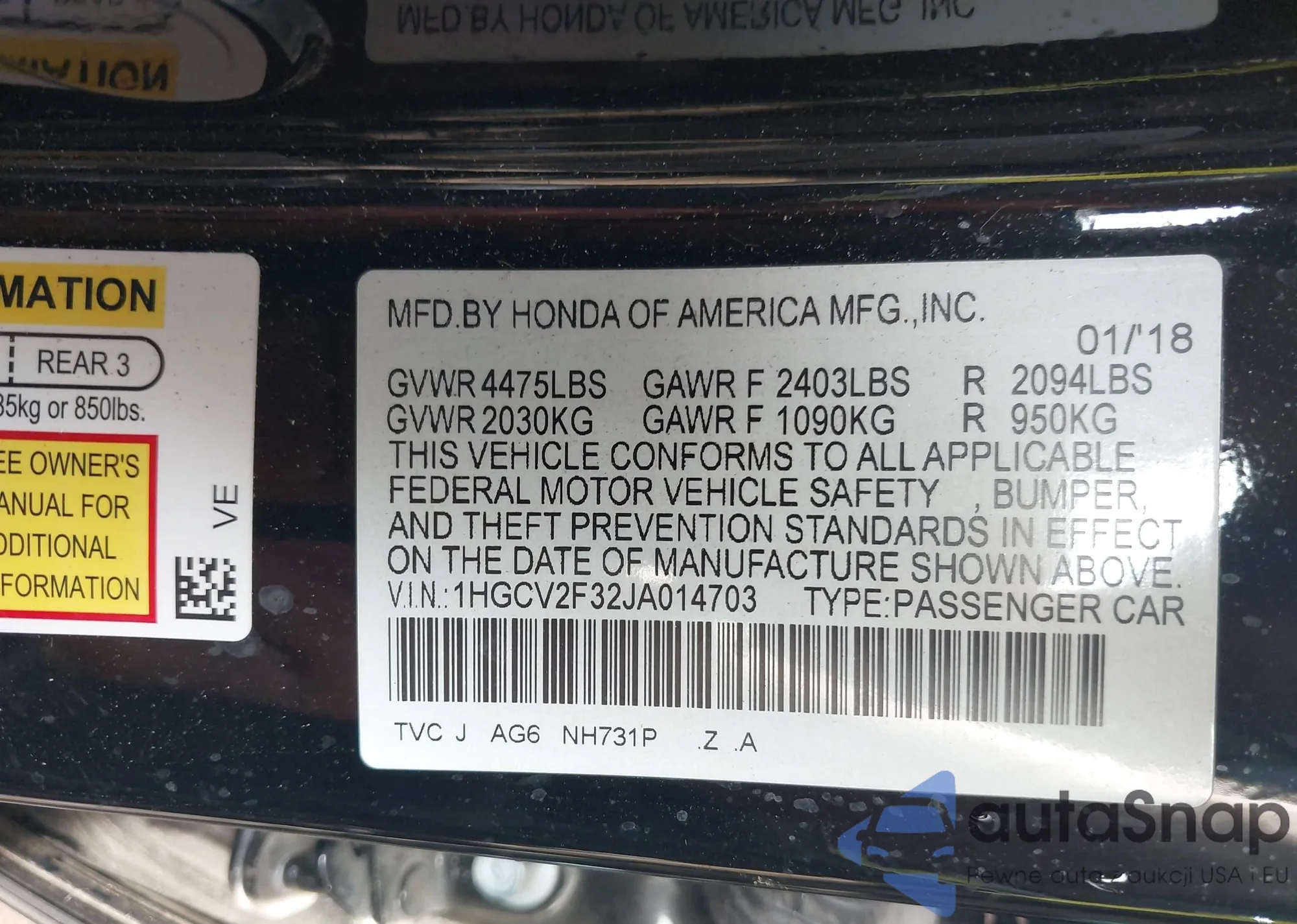 LOT: 43065787 VIN: 1HGCR2F93GA053544